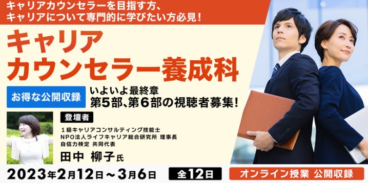 プロの“キャリアカウンセリング”がお得に学べるチャンス!eラーニング「キャリアカウンセラー養成科」公開収録の視聴者募集‼(第5部・第6部)