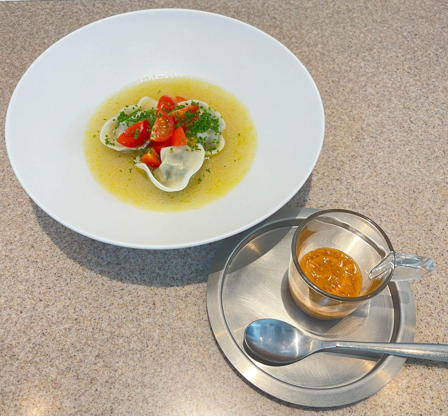国内やイタリア各地の星付きレストランで修業を積んだ平雅一氏がオーナーの<Don Bravo>は、今回フードコレクションに初出店です。イタリアンシェフが作る「アクアパッツァ餃子」はサバの干物、菜の花、ホタテ、イカの具材で作られ、スープは蛤のダシとフレッシュトマトを使用しています。別添えのごまラー油ソースを入れると担々麺のような味に変化し一度にふたつの味を楽しめます。