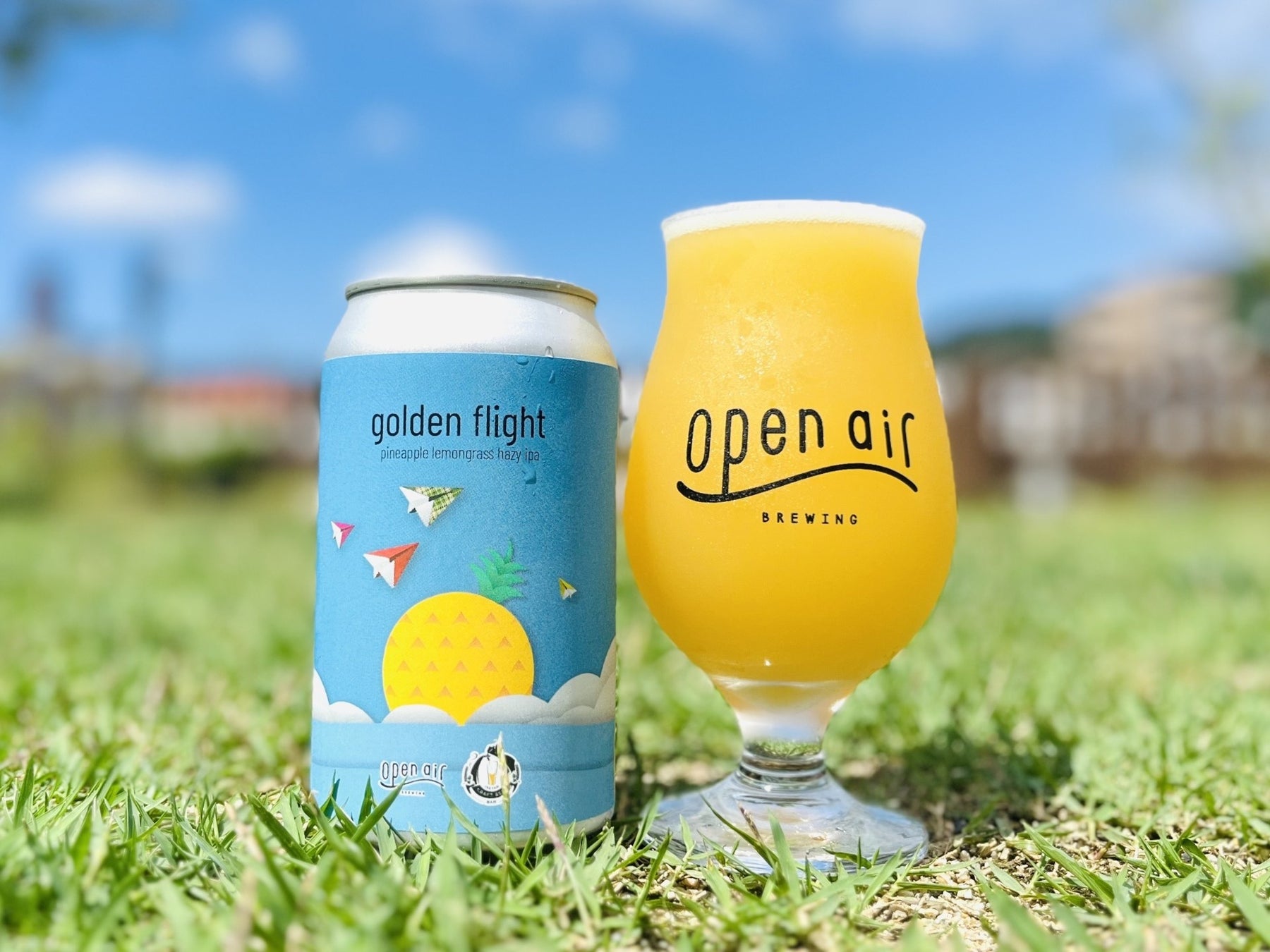 元給食室のスペースを活用するブルワリーの<オープンエアブルーイング>。「golden flight」はパイナップルのジューシーさとレモングラスの爽やかさを感じられるヘイジーIPA。 パイナップルはフルーツの中では色々な食事との相性が良いので、スパイシーな味付けやオイリーなものなど、脂分をスッキリ流し餃子と一緒に楽しむのもおすすめです。