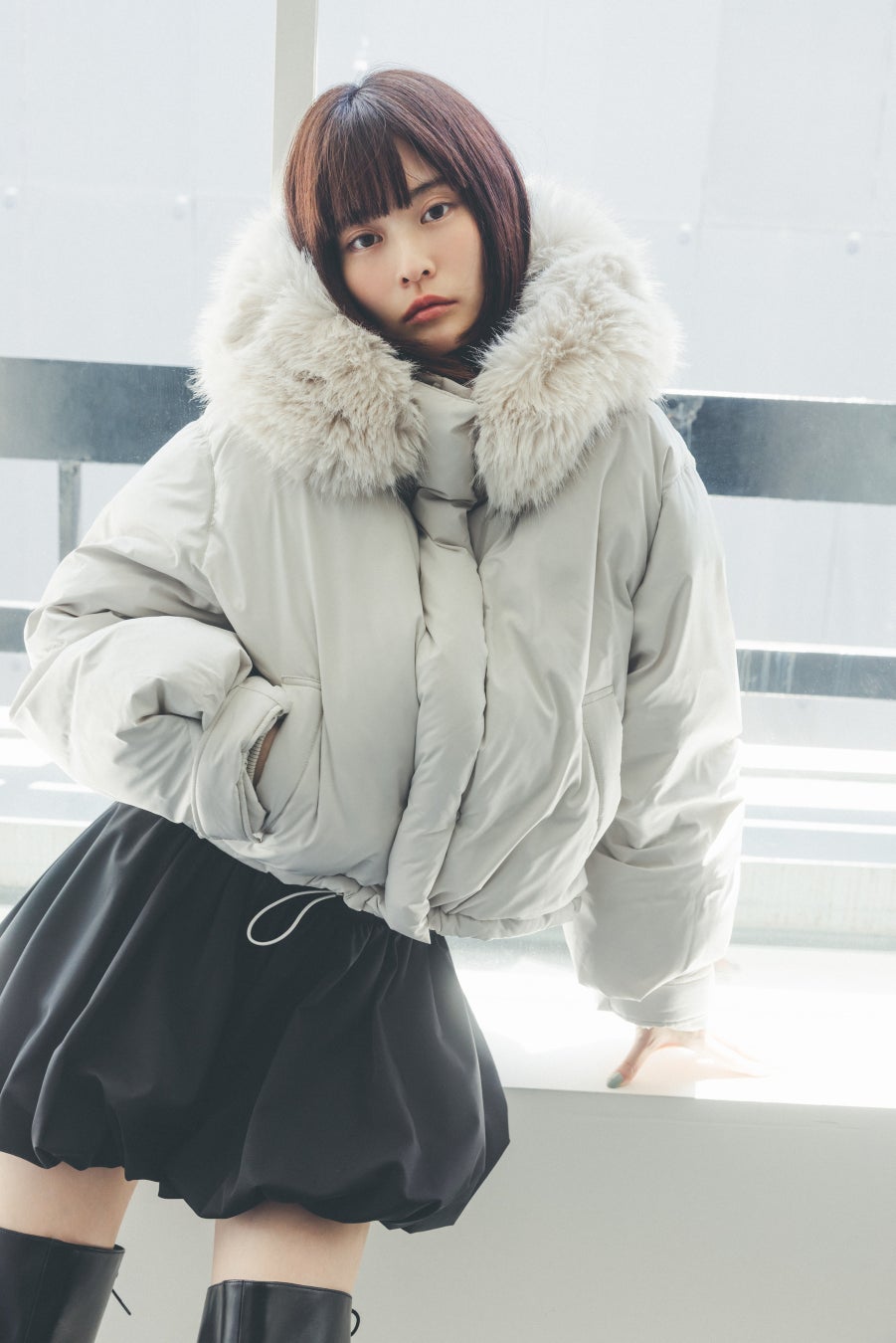 取り外し可能なフェイクファーをたっぷりと使用することでリッチな装いに仕上げ、女性らしく仕上げました。