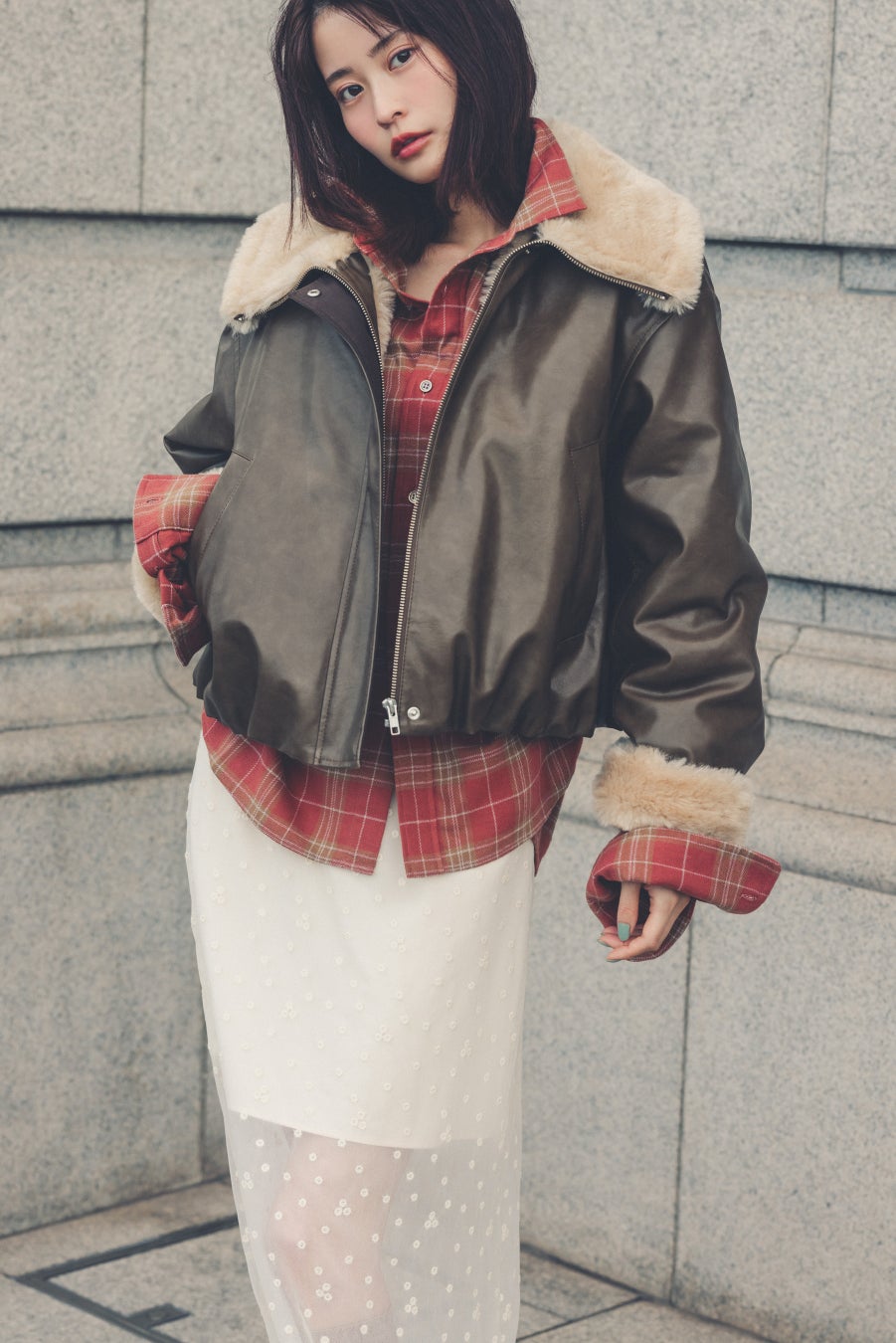 アイボリーは、ボリュームのあるファー素材で、ブラックとブラウンは、表地はビンテージ風のツヤ感のあるレザー調素材を使用しております。