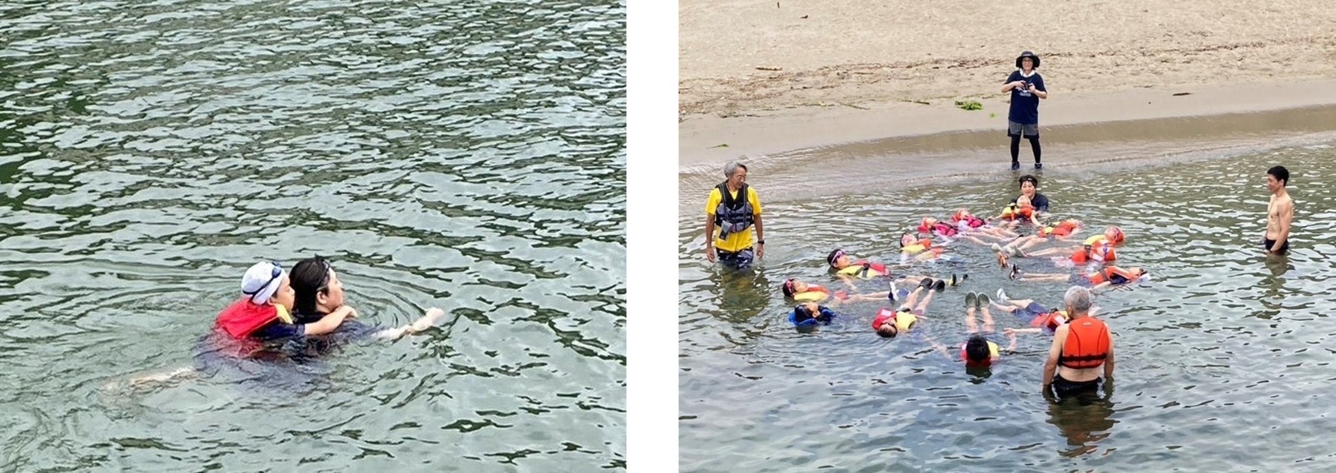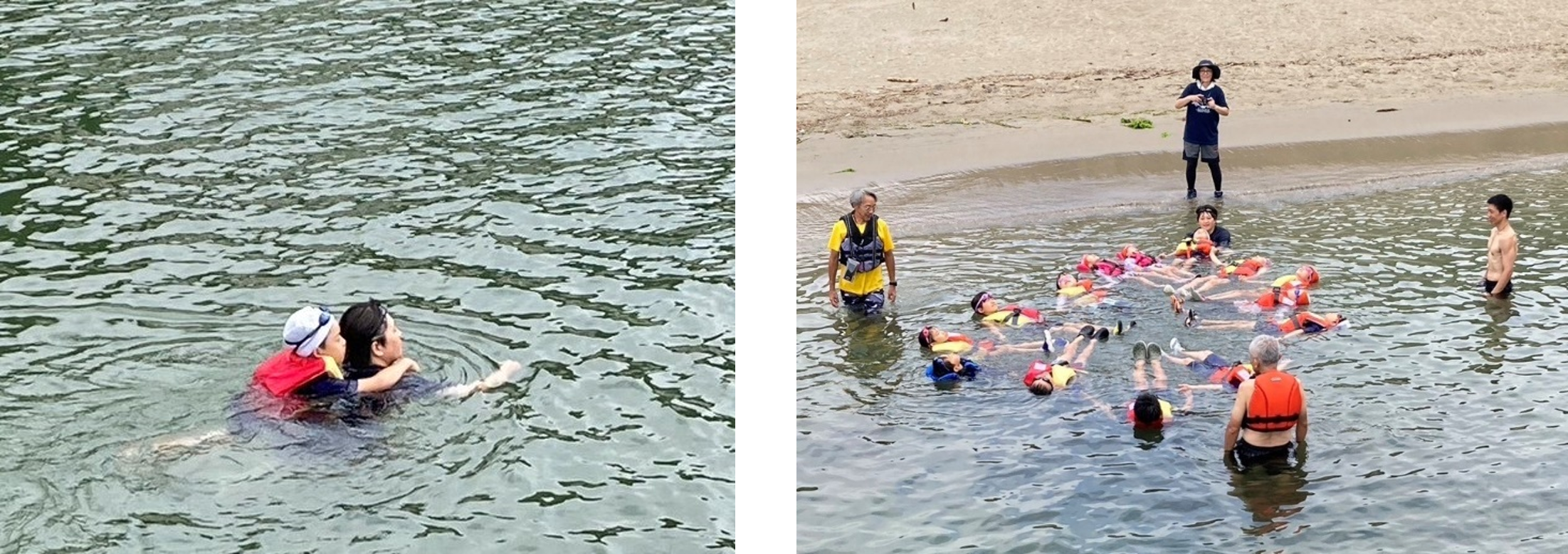 ペットボトルで身体が浮くのか?という実験や、インストラクターに助けてもらう体験を行い、有意義な「夏休み子ども大学(楽)」になりました。