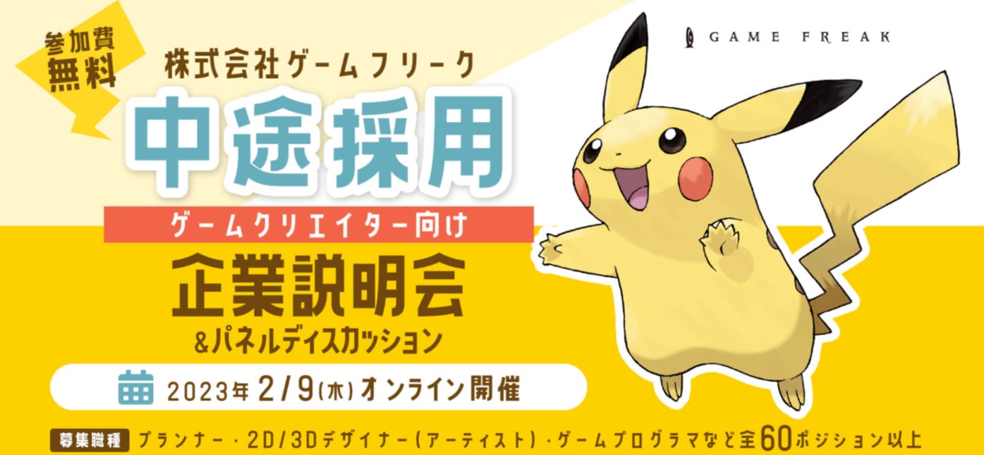 【ゲーム業界】プランナーやデザイナーなど、全60ポジションで積極採用中!2/9(木)ゲームフリーク 中途採用オンライン企業説明会・パネルディスカッション