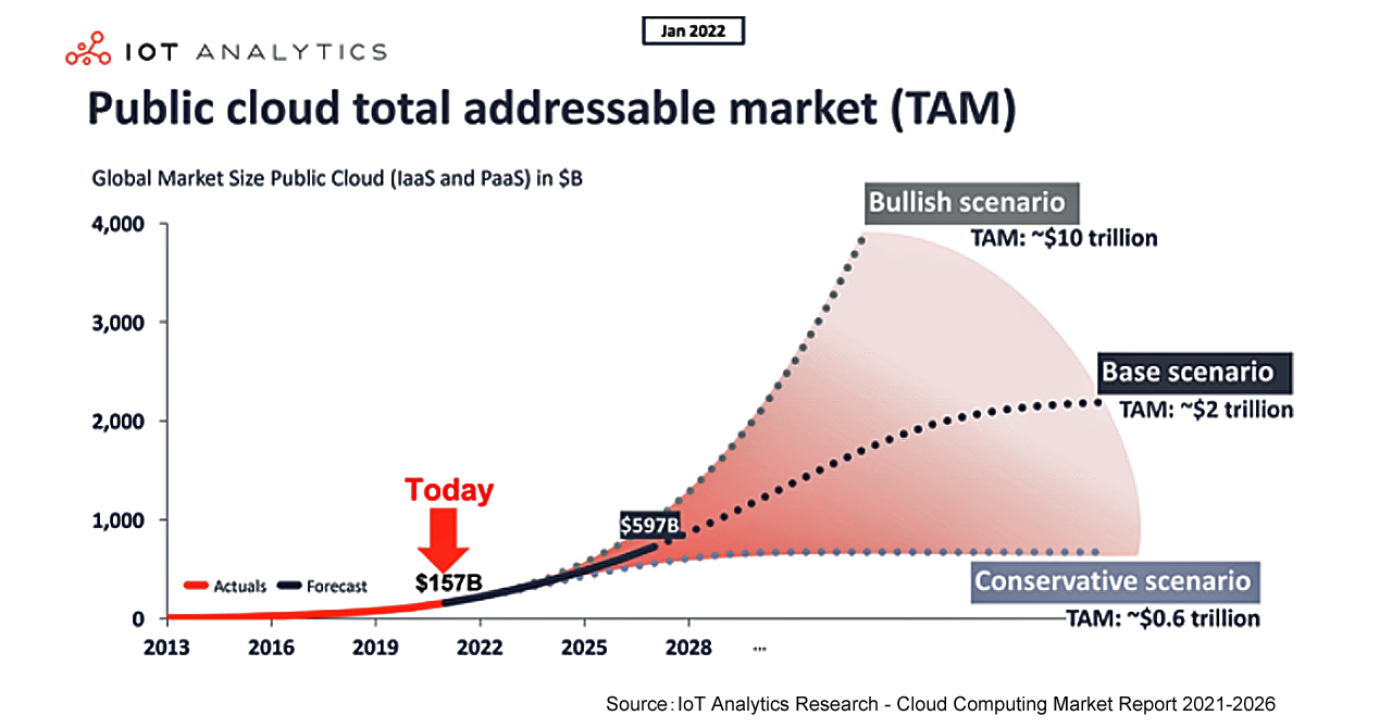 強気のケース。最も楽観的なシナリオで、クラウドのTAM総額は約10兆米ドルになると考えています。