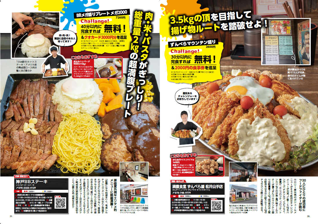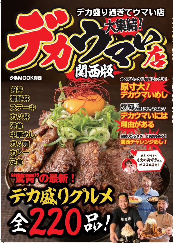 本誌は関西の最新デカ盛り店を徹底リサーチし、ド迫力のデカ盛りメニュー全220品をドカンと紹介するのはもちろんのこと、デカ盛り店の歴史やその店主の魅力にも迫ります。