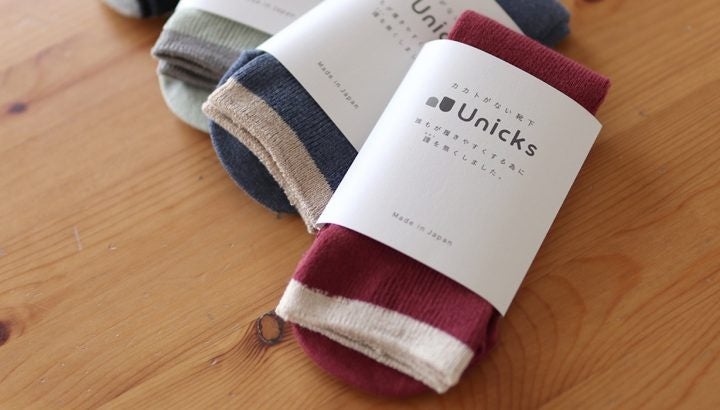 かかとも、左右・前後ろもない、履き口がわかりやすい靴下「Unicks」を、認知症当事者にもより便利に楽しく履いていただけるよう、商品開発を進め、商品バリエーションを増やしていきます。