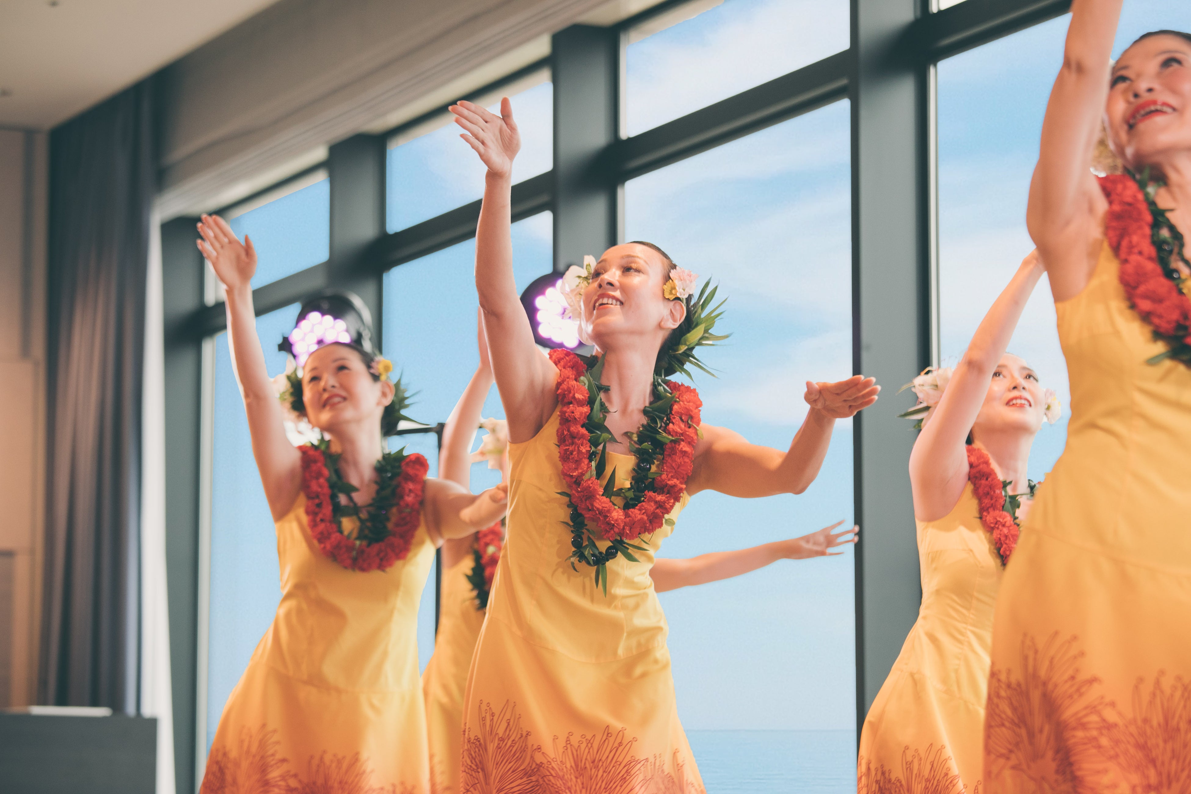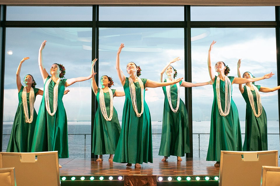 「コーラルテーブル」でのブッフェをお楽しみいただいた後は、バンケットルームにおいて、フラサークルによるフラショー、心地よいウクレレの生演奏で人気の名渡山 遼さんの特別公演、会場の外ではハワイアンキルトの展示、ハワイグッズの販売も行います。