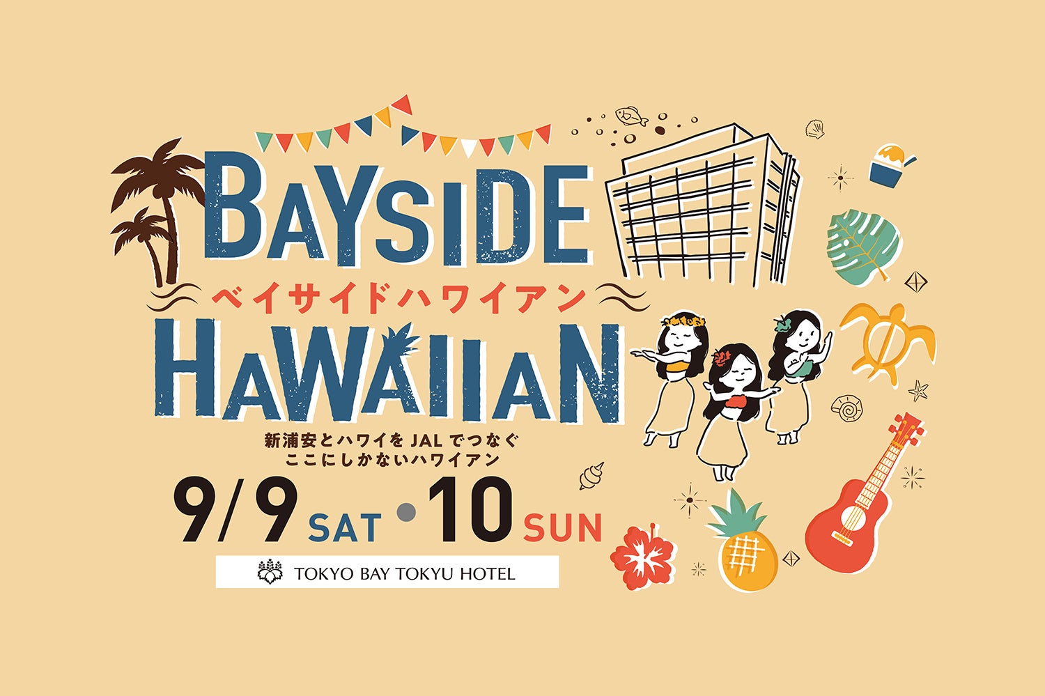 また、グループホテルの宿泊券や食事券が当たるお楽しみ抽選会、日本航空株式会社のご協力による特別企画を実施いたします。東京ベイを望む開放感のある空間で、ハワイ気分をご堪能ください。