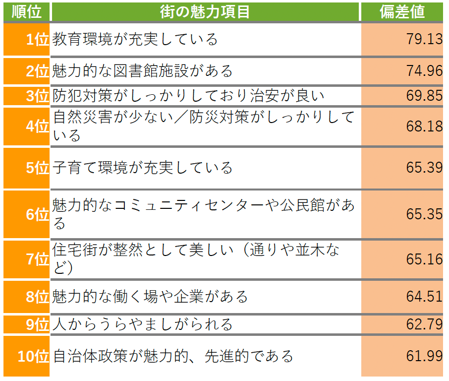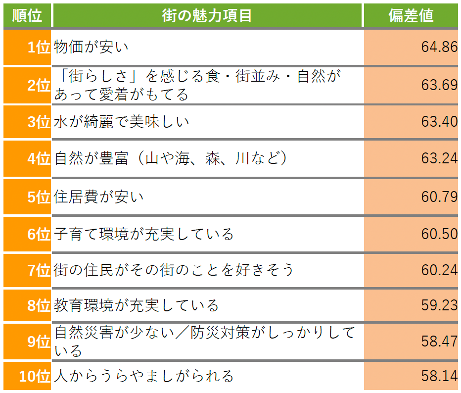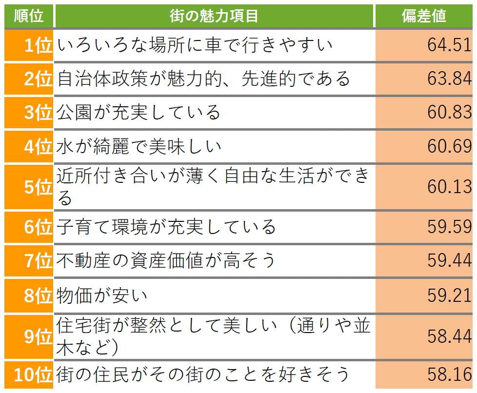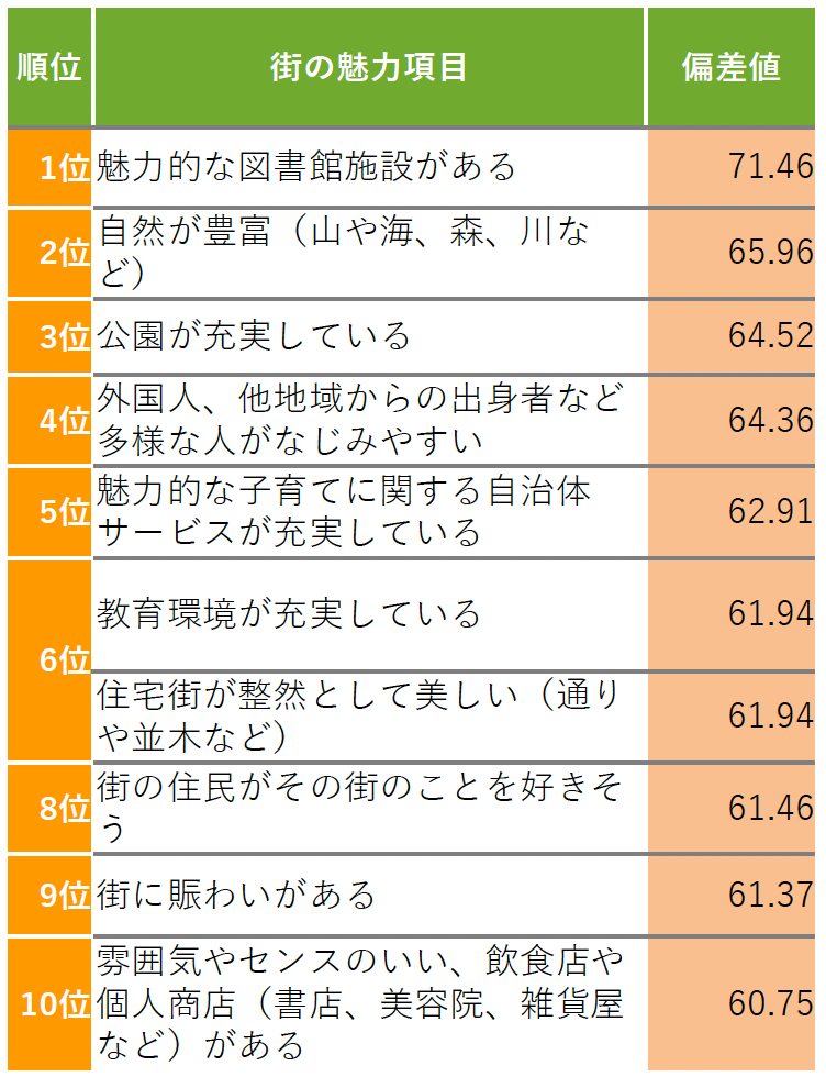 ▼亀田郡七飯町 街の魅力項目TOP10