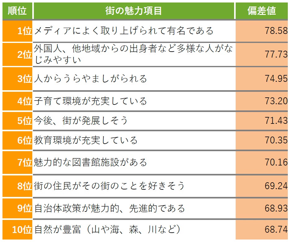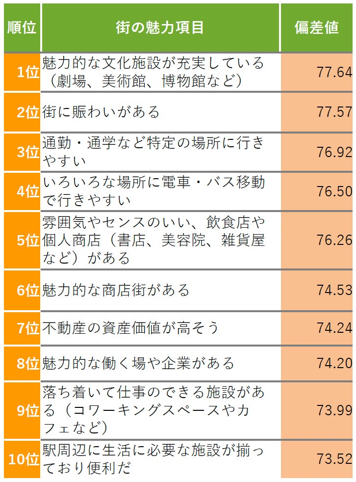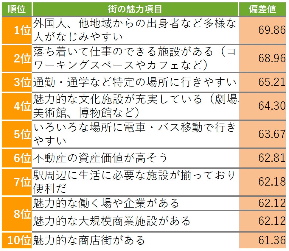 自治体を回答した者に対し、住んでいる街の魅力などについて調査した。