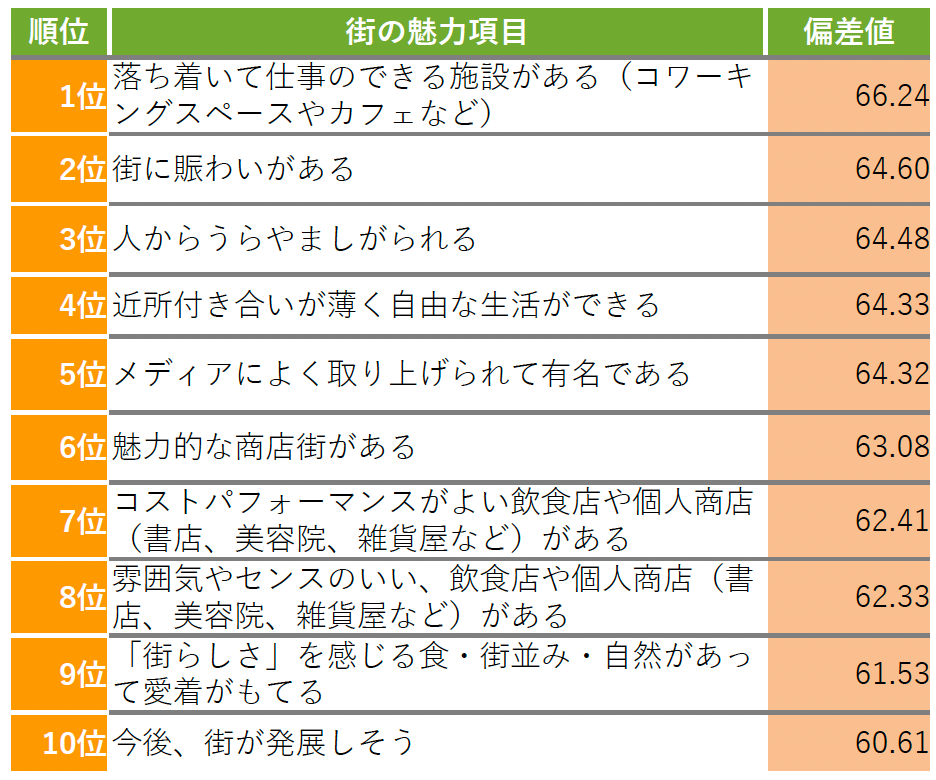 ▼上川郡東川町 街の魅力項目TOP10