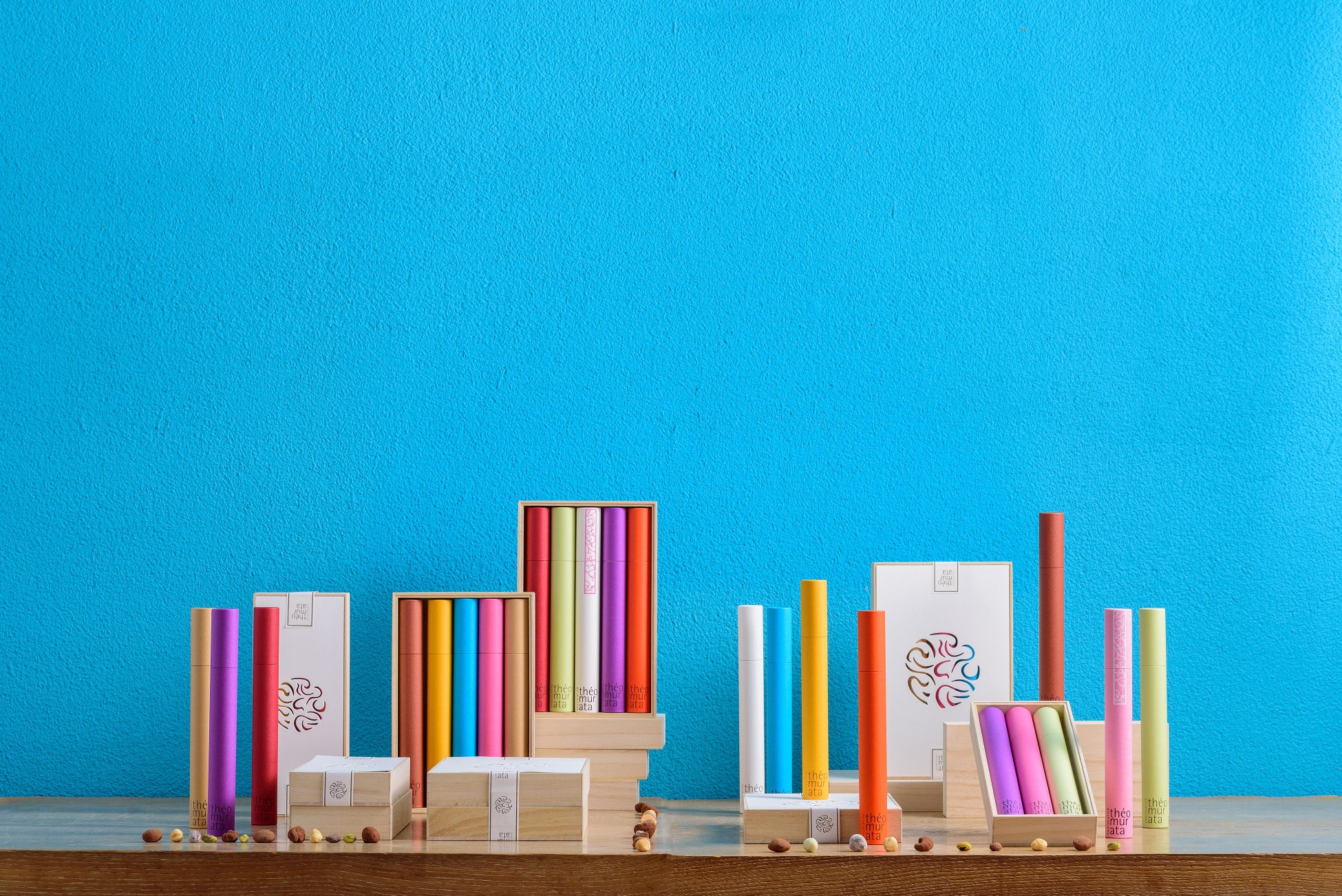 滑らかなチョコレートでナッツやドライフルーツのおいしさを包み込み、筒形のカラフルなパッケージに詰めました。厳選された素材を使った12種類がそろいます。