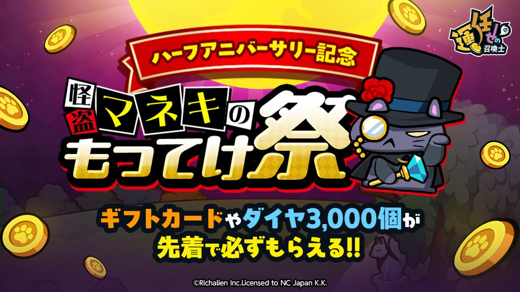 『運任せの召喚士』ハーフアニバーサリーを記念して豪華プレゼント&キャンペーンを開催!特設サイト「怪盗マネキのもってけ祭」の公開や友達招待キャンペーンもスタート!