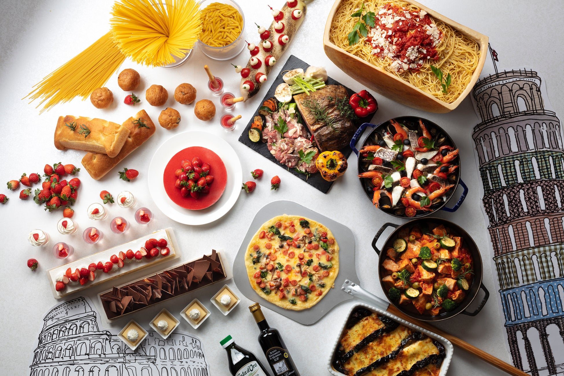 「“Mangiare con Amore(マンジャーレ・コン・アモーレ)!”=愛を込めて食べる」をテーマに、イタリアフェア 2025を開催いたします。軽井沢プリンスホテル ウエストの「ALL DAY DINING LOUNGE/BAR Primrose」では、ランチやディナーでイタリアのエミリア、シチリア、トスカーナなどのさまざまな地方の郷土料理をアレンジしたブッフェメニューをお楽しみいただけます。家族や友人と一緒に食卓を囲み、食事を楽しむことを重要視するイタリアの文化にならって、大勢でにぎやかにお楽しみください。
