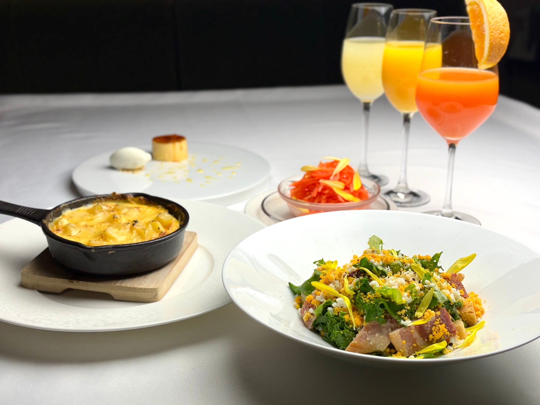 「浅間小町と軽井沢ベーコンを使ったミモザサラダ」や、檸檬を使った「ゴルゴンゾーラチーズのクレームブリュレ ミモザをイメージ」などのメニューのほか、黄色く明るい色が国際女性デーにぴったりな「ミモザ」や「ホワイトミモザ」などのカクテルをフリーフローでお楽しみいただける期間限定のバルイベントです。