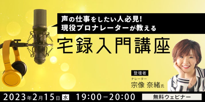 株式会社クリーク・アンド・リバー社(C&R社)は2月15日(水)、株式会社ジンプクと共同で、TVやYouTube、TikTokなどの映像制作に関わるクリエイターの方やナレーターなどの声の仕事に就きたい方を対象に、無料のオンラインセミナー「声の仕事をしたい人必見!現役プロナレーターが教える、宅録入門講座」を開催いたします。