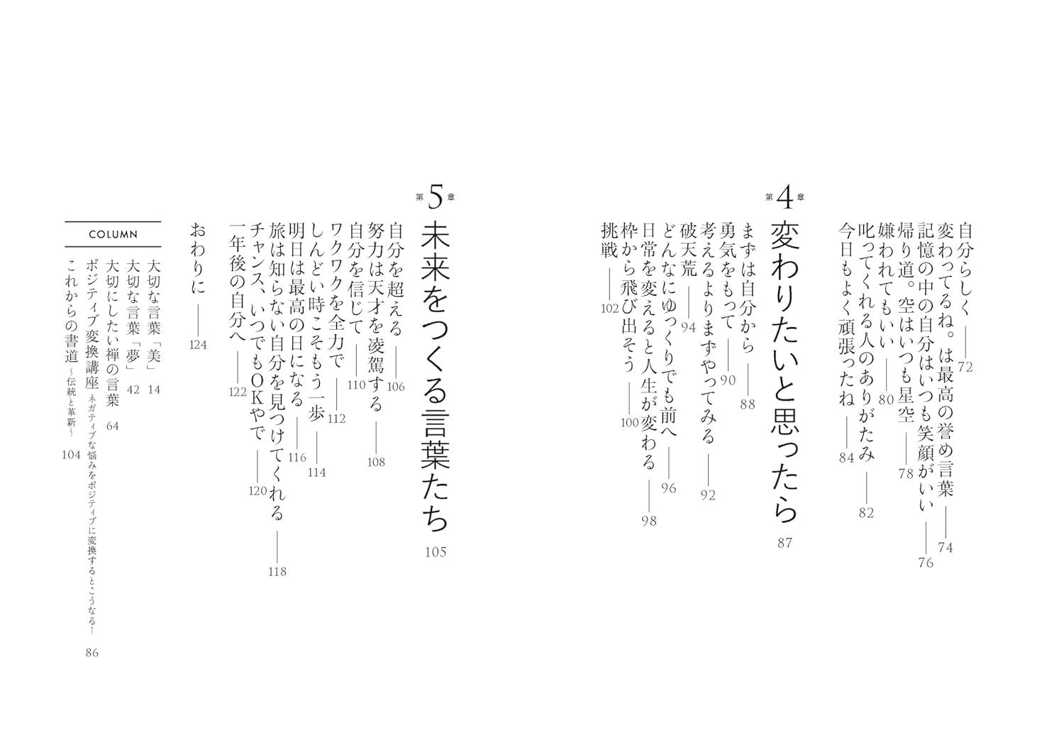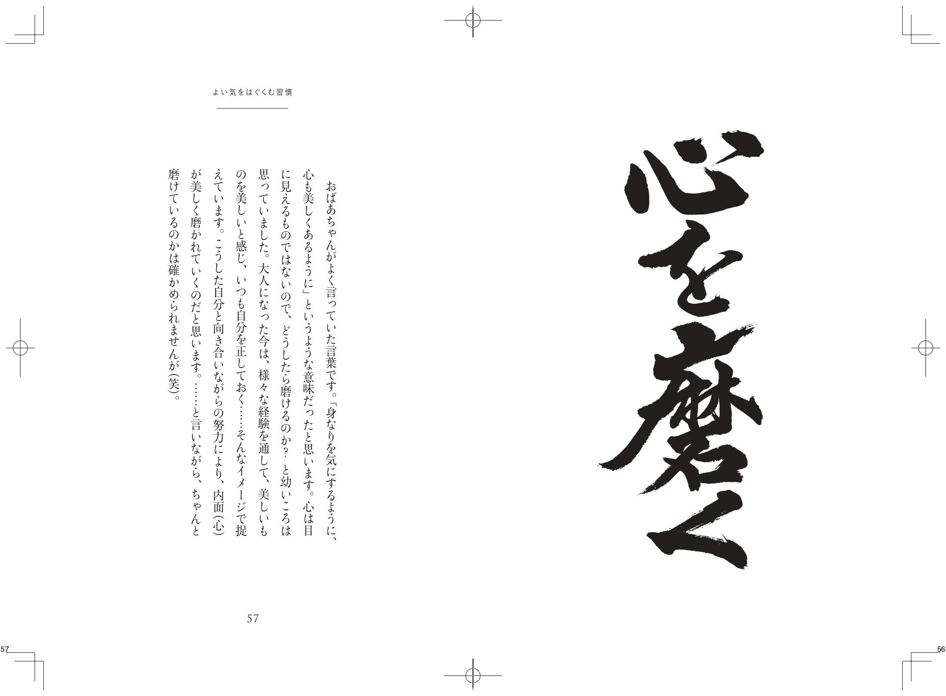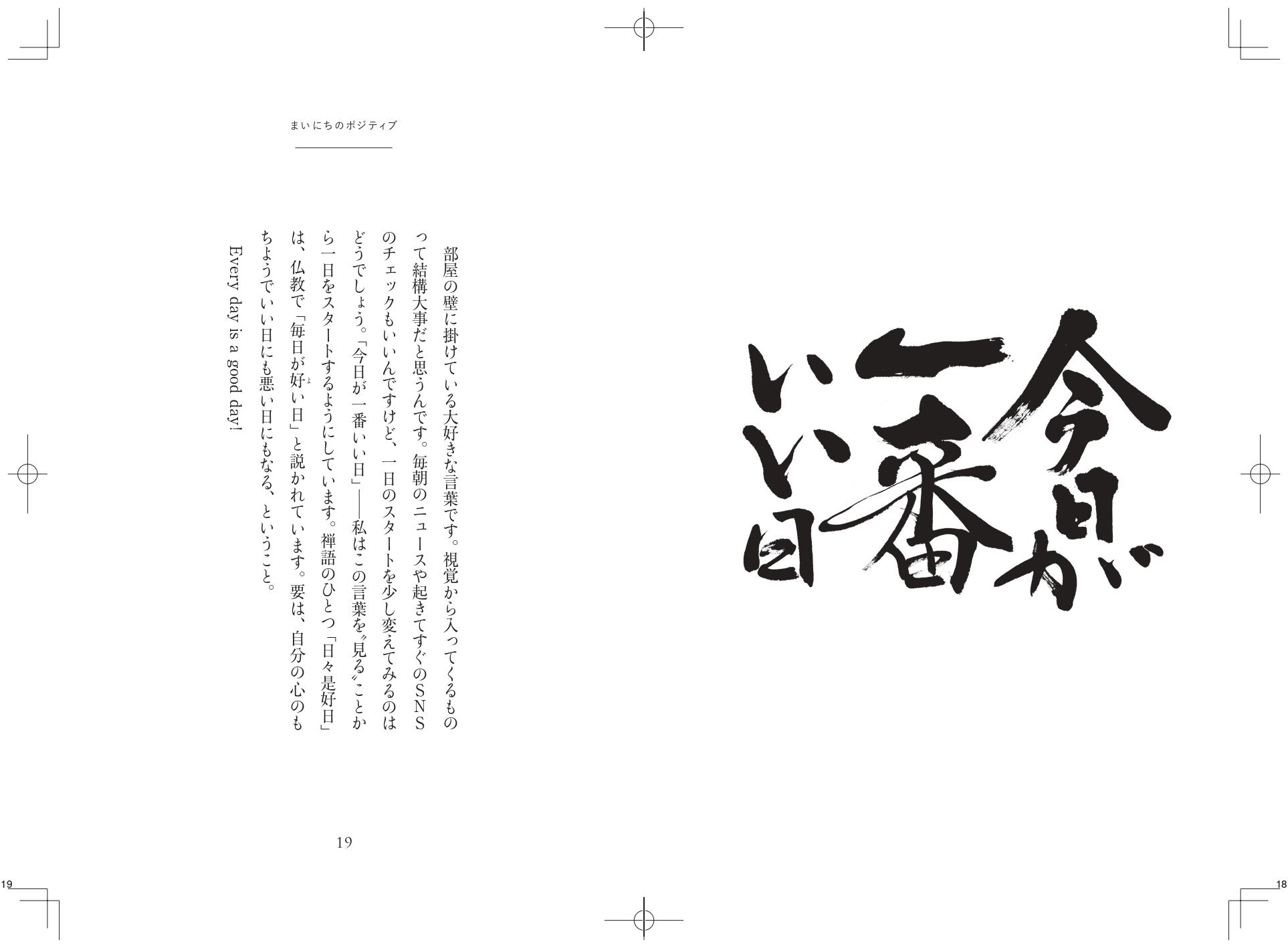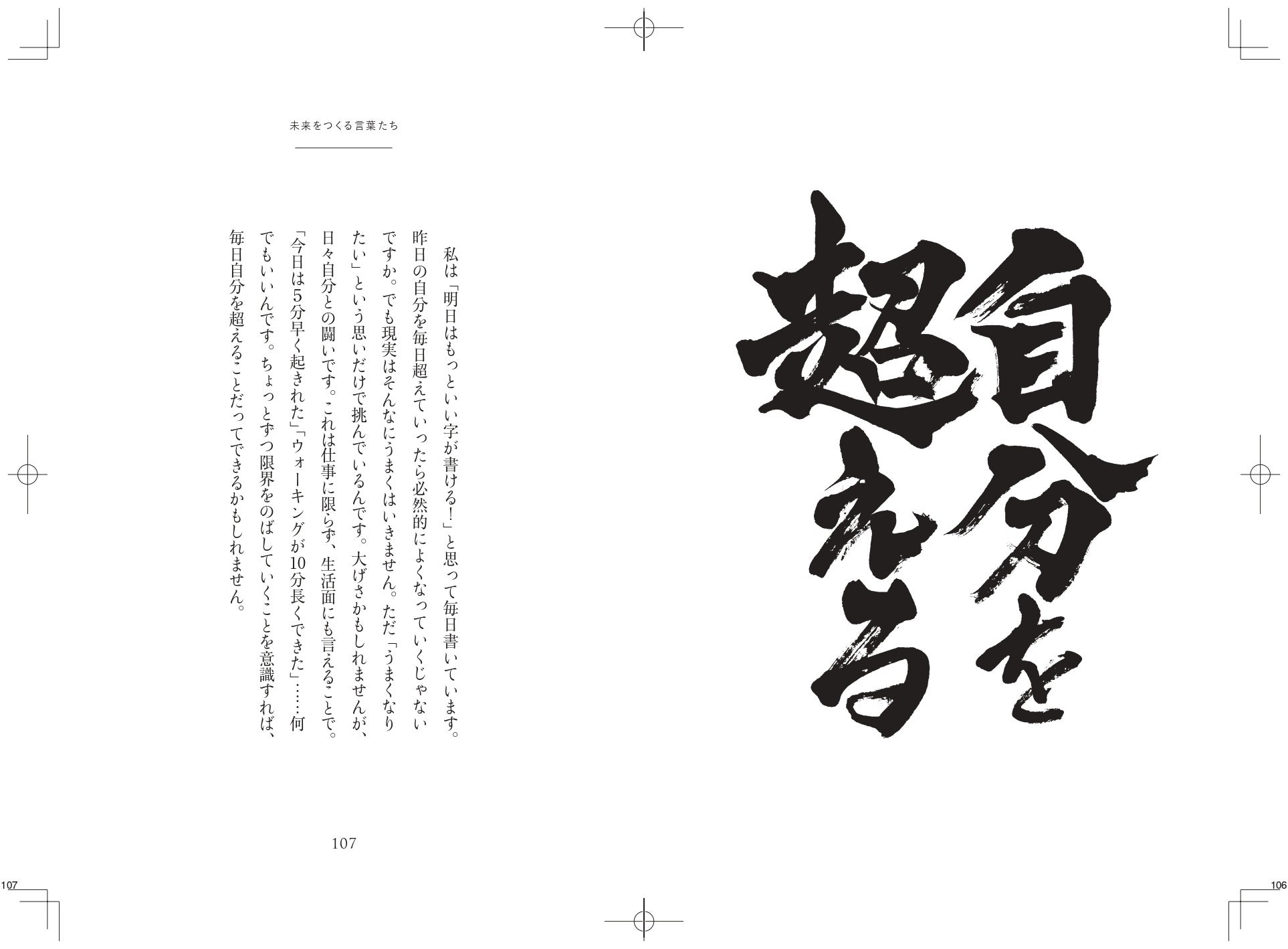 ちょ っと悩んだとき、楽しくハッピーに、明るくなれるヒントが詰まった一冊です。 学生時代は結構ヤンチャ(関西弁でいう“ゴンタ”)で母親が呼び出されるこ ともしばしば……。サーフィン好きで金髪ギャルだった時期もあったものの、ど んなときにも書道は続け、世界で認められる書道パフォーマンスを披露し、 MBS「情熱大陸」で取り上げられたことも。今もEテレ「にほんごであそぼ」でも 活躍されています。