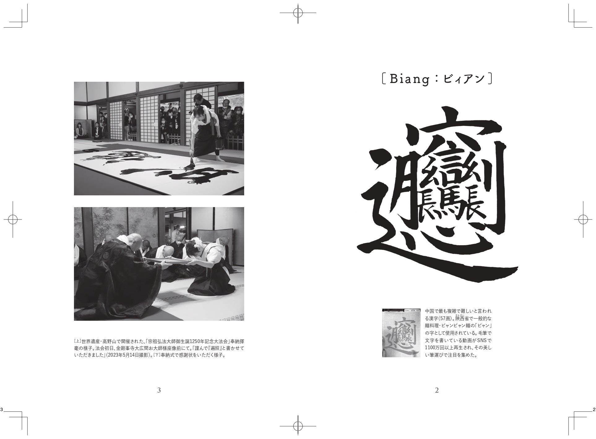 大阪府出身、1990 年生まれ。フランス、アメリカ、 中国をはじめ、世界 10 か国 以上で書道パフォ ーマンスを披露。国内では、第 99 回天皇杯決勝にて約 5.8 万人の観客を前 にオープニングアクトを務めた。また、2023 年 5 月には世界遺 産高野山に巨大屏風を奉納。 有名狩猟ゲーム「モンスターハンターライズ」の筆文字ロゴや、手塚治虫原作の 「どろろ 」の題字を担当 。 国立競技場貴賓室の巨大屏風作品を手掛ける。「伝 統× 革新 」をテーマに、新しい書道の魅力を伝えている。MBS「情熱大陸」に出演。