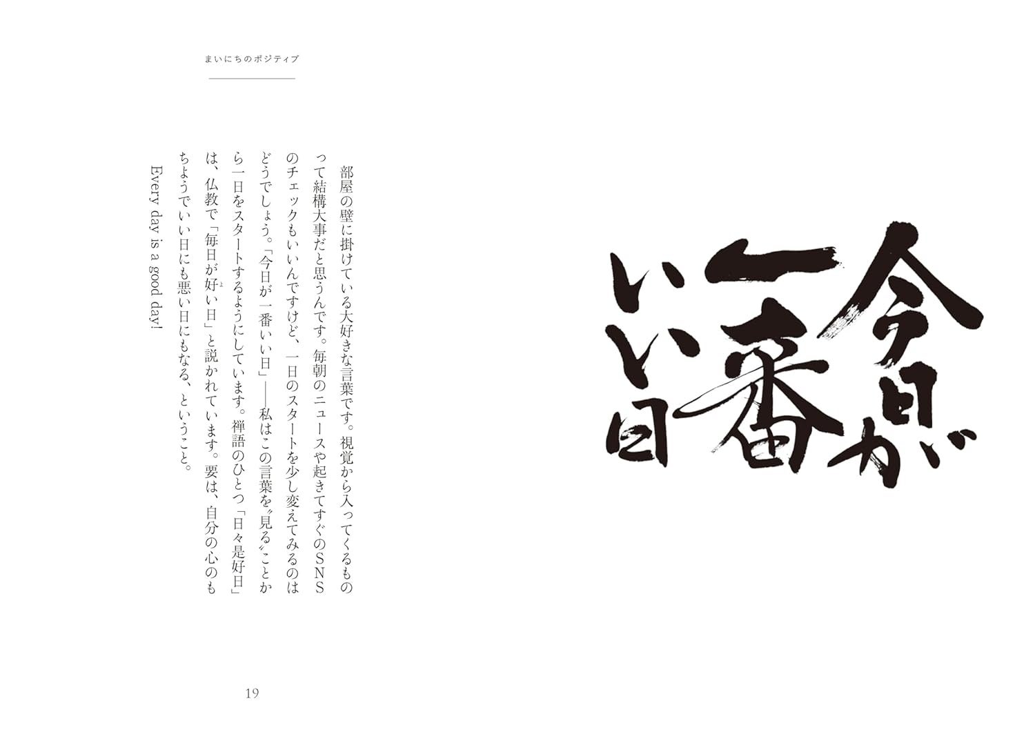 9/26~10/1に開催する大阪での個展に合わせ、個展でも展示される言 葉も収録した書籍『毎日、ポジティブ。』 を発売します。個展で生の作品に触 れ、個展に足を運んだ方は余韻に浸り、運べない人も、楽しめる内容となって おります。
