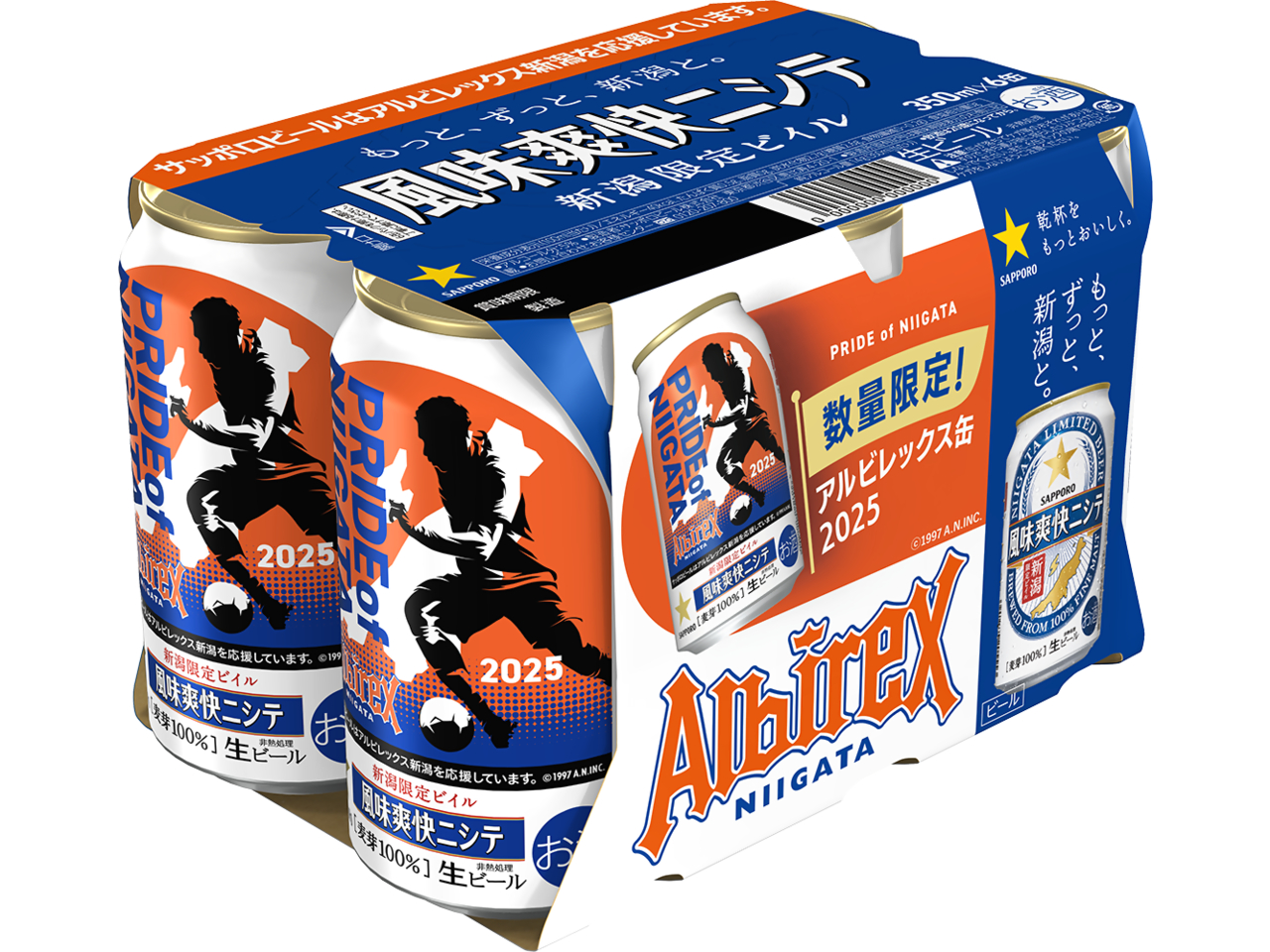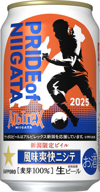 サッポロホールディングス(株)のグループ企業であるサッポロビール(株)は「新潟限定ビイル 風味爽快ニシテ アルビレックス新潟缶」を、2025年2月12日に新潟県内で数量限定発売します。