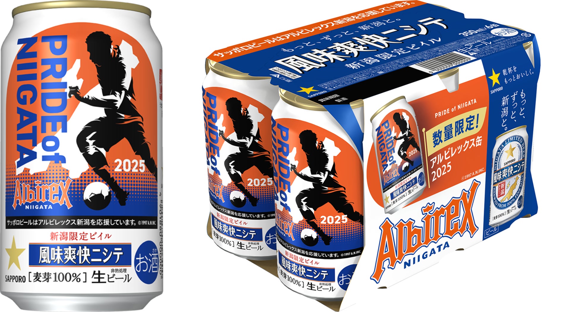 本商品は、日本のビール産業黎明期を開拓した人物を数多く輩出した新潟県への感謝の気持ちを込めて誕生し、新潟県限定で通年販売している「風味爽快ニシテ」と「アルビレックス新潟」のコラボレーション商品です。