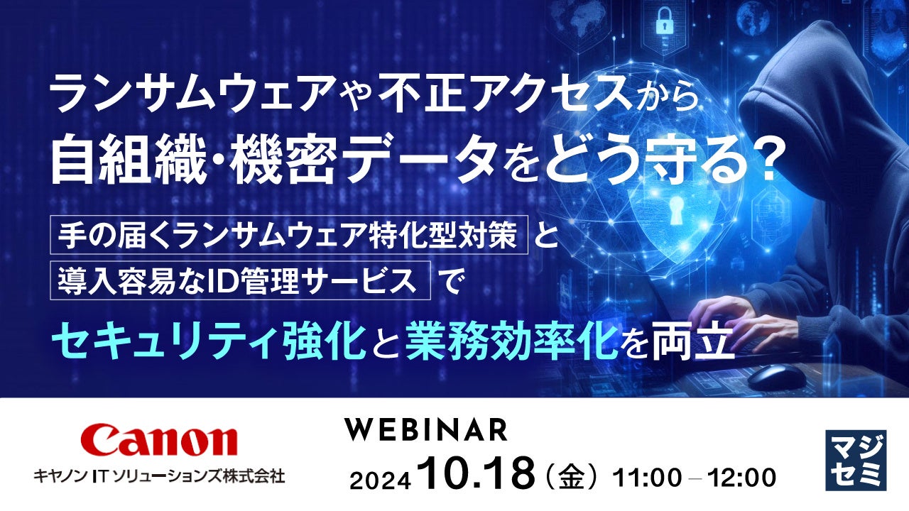 マジセミ株式会社は「ランサムウェアや不正アクセスから自組織・機密データをどう守る?」というテーマのウェビナーを開催します。
