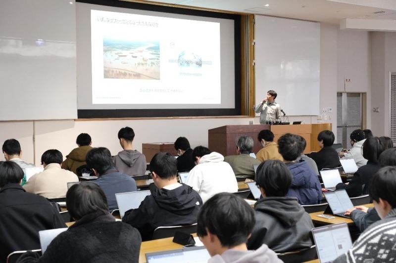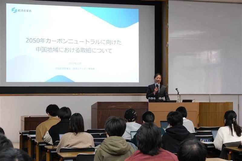 国立大学法人岡山大学(本部:岡山市北区、学長:那須保友)は、2024年12月11日、昨年度に引き続き本学学生を対象としたカーボンニュートラル(CN)について学ぶ特別講義を行いました。この特別講義は、本学学生に地域におけるCN実現に向けた取り組みや課題を知ってもらい、CNについての理解促進を図ることを目的としたもので、本学学生約70人が参加しました。