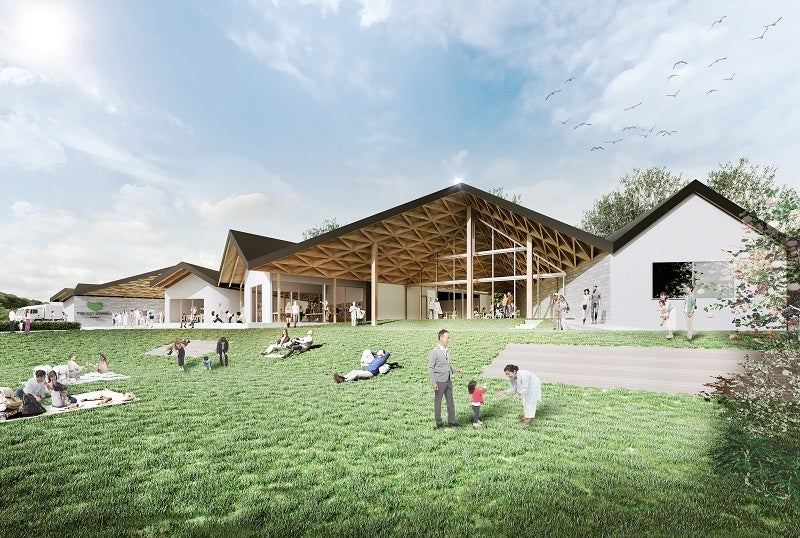 Fun Eat Makers in Okumaは、様々な人が農業に関わり(つくる)、美味しくて体によい食(たべる)を通じて、たくさんの人が大熊町とつながる(であう)場所です。これを実現するべく、「高付加価値農業生産エリア」「食を楽しむエリア」「様々なプロフェッショナルがつながるワーケーション滞在エリア」の3つのエリアで構成する建物と、「大熊町と様々な人がつながる」半屋外エリアと「大熊町の自然の景色とつながる」屋外エリアの5つで構成されています。