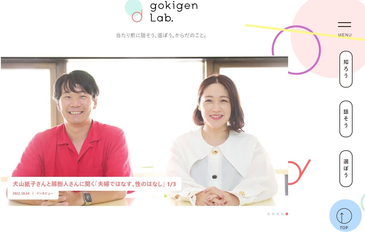 gokigen Lab.公式noteで、産婦人科医・宋 美玄(そん みひょん)さんによる生理や更年期のお話、TBSラジオPodcast番組『OVER THE SUN』で人気コラムニストのジェーン・スーさんと、元TBSアナウンサー・堀井美香さんによる更年期についての対談。犬山 紙子(いぬやま かみこ)さんと劔 樹人(つるぎ みきと)さん夫婦による性教育についての話などを読むことができます。