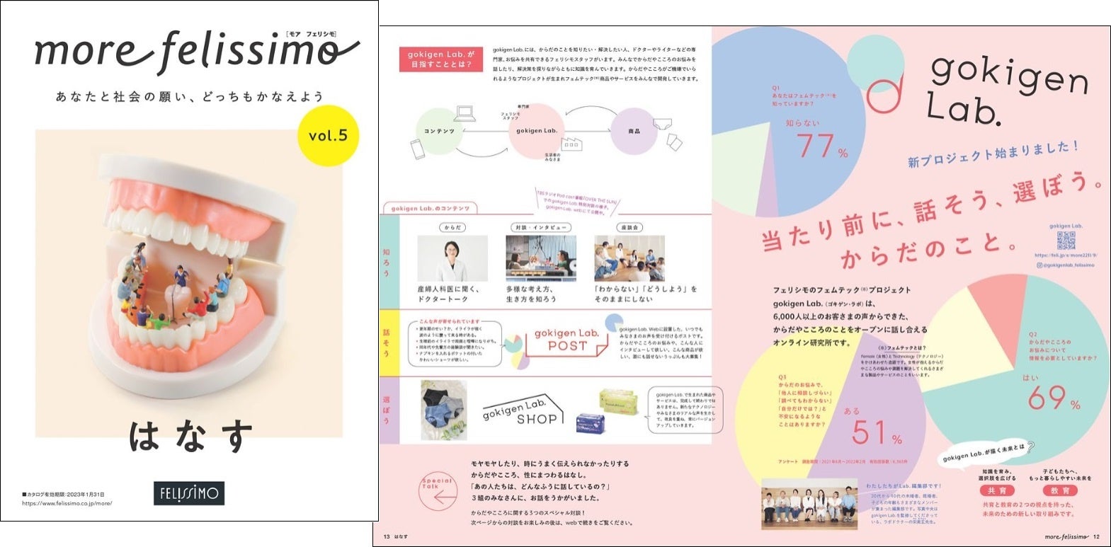 「当たり前に話そう、選ぼう。からだのこと。」6,000人以上のお客さまのお声から生まれたフェムテックプロジェクト「gokigen Lab.[ごきげんラボ]」をフェリシモがスタート