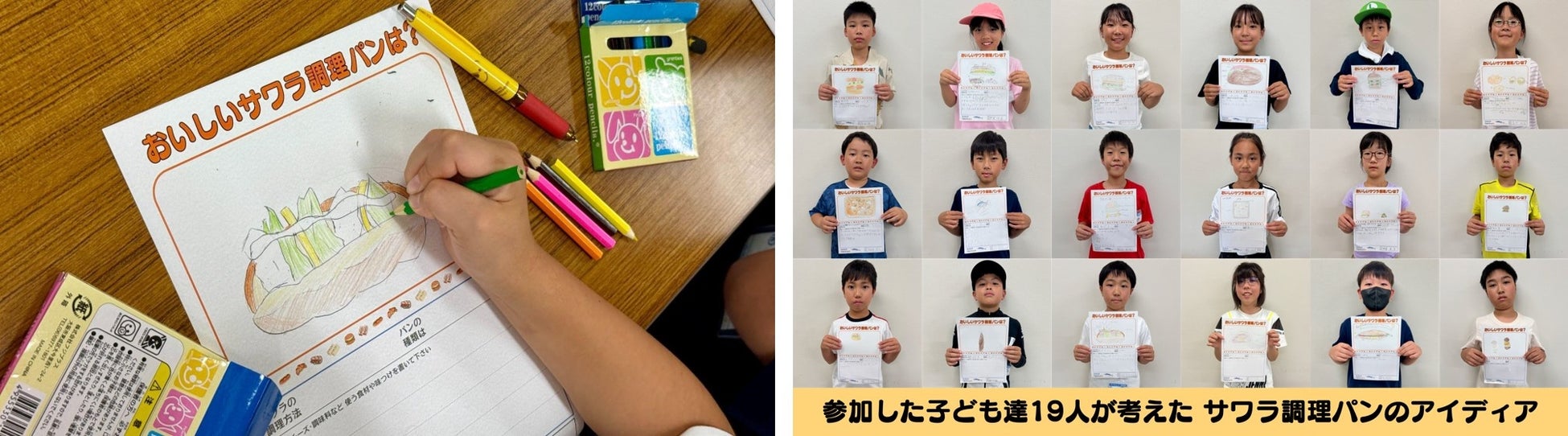 食後には、今回のサワラ調理を踏まえて美味しいと思えるファストフードレシピを考えました。子どもたちのアイディアを元に新たなサワラパンを開発し、今秋には県内のパン屋で発売することを目指します。