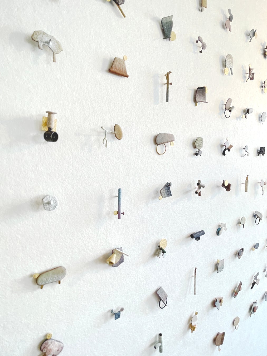KAORI JUZU氏は、日本人には馴染み深い「108」という数字にインスピレーションを得て「108 POINTS OF VIEW」を制作しました。それまでの制作時に生じた金属端材を再利用し、108点全て異なる作品の制作に没頭することが、アーティスト自身も当時感じたコロナ禍が引き起こす不安や恐れのみならずマテリアルの浄化ともなり、整然と並ぶ108点が織りなす “intense simplicity”。その静かな力強さは見る者を世界の反響や喧騒から遠く離れた異次元へと誘います。
