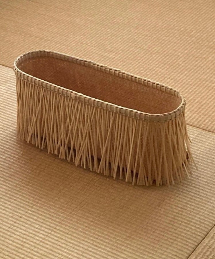 安部 仁美 氏は、女子美術大学 短期大学部 生活デザイン専攻で染色を学んだ後、MAISON MARTIN MARGIELA日本旗艦店の立ち上げメンバーとしてチームに参加。その後は、大分県竹工芸訓練支援センターにおいて竹工芸の基礎を学び、のちに竹工芸家として活動しています。日常と非日常のあいだにあるようなもの、余白を残し遊び楽しむことが制作のテーマにあり、竹という素材の特性、伝統的な籠編みの技法を軸として制作しています。