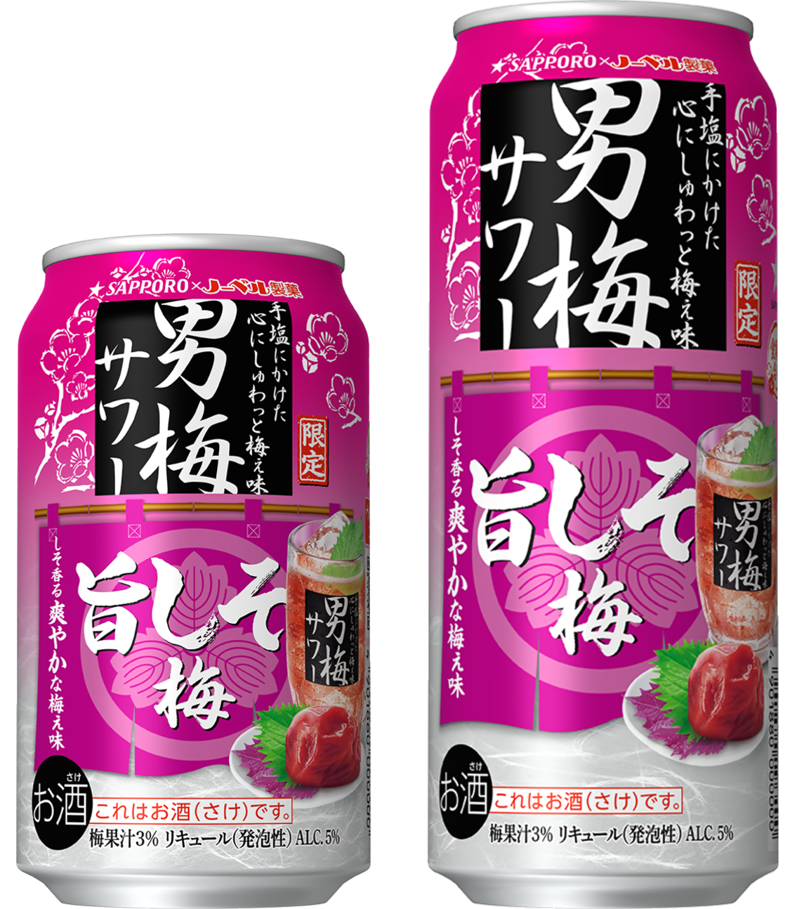 「サッポロ 男梅サワー ウメぇ無糖」「サッポロ 男梅サワーの素 20度」はパッケージのみの変更。