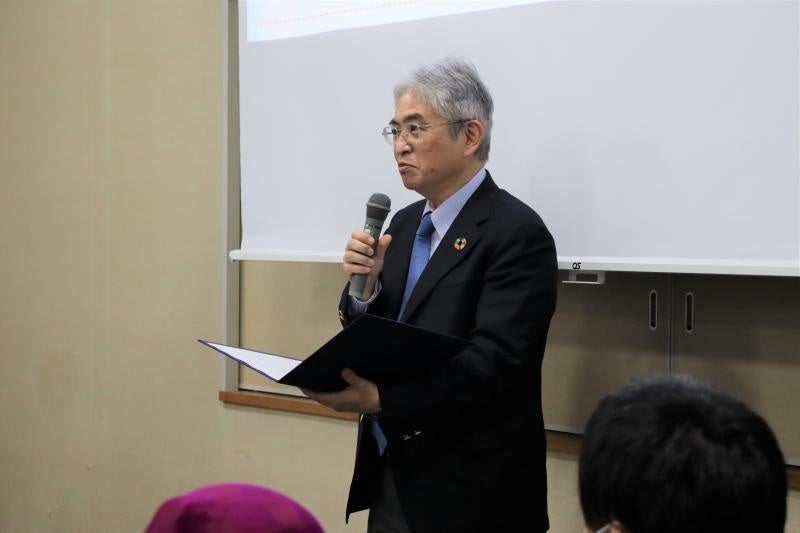 会の冒頭、本学の那須保友学長から「この事業では、みなさん同士の交流、みなさんと教職員との交流の促進を柱の一つとしており、face to faceでのコミュニケーションは非常に重要です。研究だけに没頭するのではなく、このような多くの人が集まる機会を活用して交流したり、OU-SPRING採択者および修了者により構成する同窓会「OU-BRIDGE」の運営を通して主体的に動いたりすることは、すべてみなさんのこれからの研究活動や社会に出てからのマネジメントに役に立ちます。この機会を活用して、今日も実りある一日にしてください」と開会のあいさつが行われました。