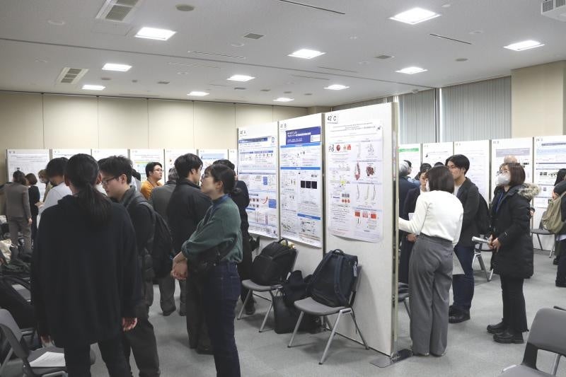 その後、OU-SPRING認定者らは、3グループに分かれ、自らの研究についてポスタープレゼンテーションを行い、他の認定者や来場した学生、教職員らと活発な議論を交わしました。