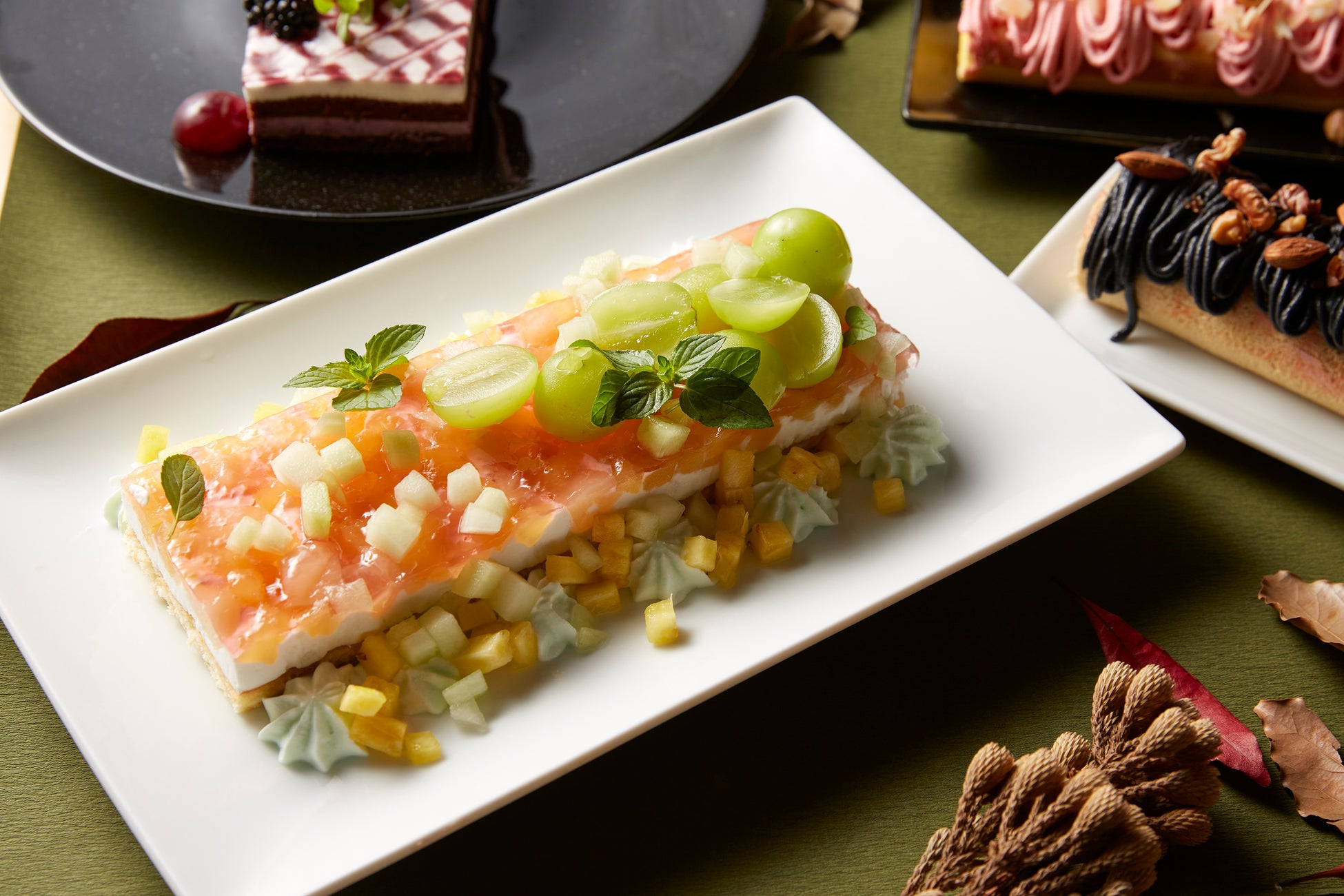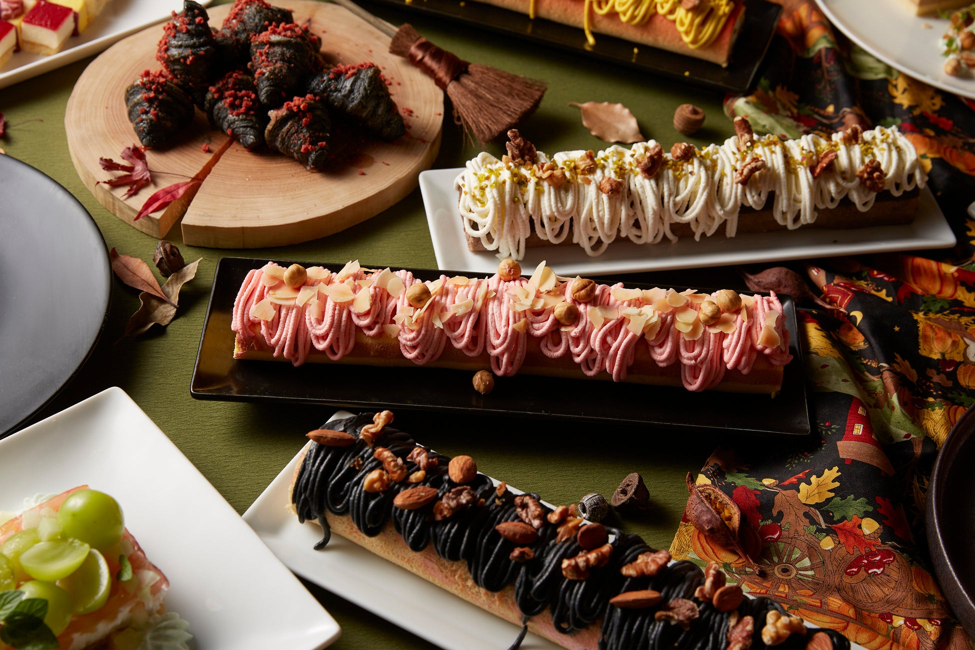 2022年9月1日(木)~10月31日(月)の期間中、人気のデザートブッフェでは「マロンケーキ」や「栗のモンブラン」など秋を代表する食材である栗を用いたスイーツのほか、「洋梨とぶどうのケーキ」「ぶどうジュレ」「フルーツ盛り合わせ」など、旬のフルーツのみずみずしい味わいをご堪能いただけます。さらに、この時期だけ登場する4種類のロールケーキなどハロウィン気分を盛り上げていただけるラインアップを用意しました。