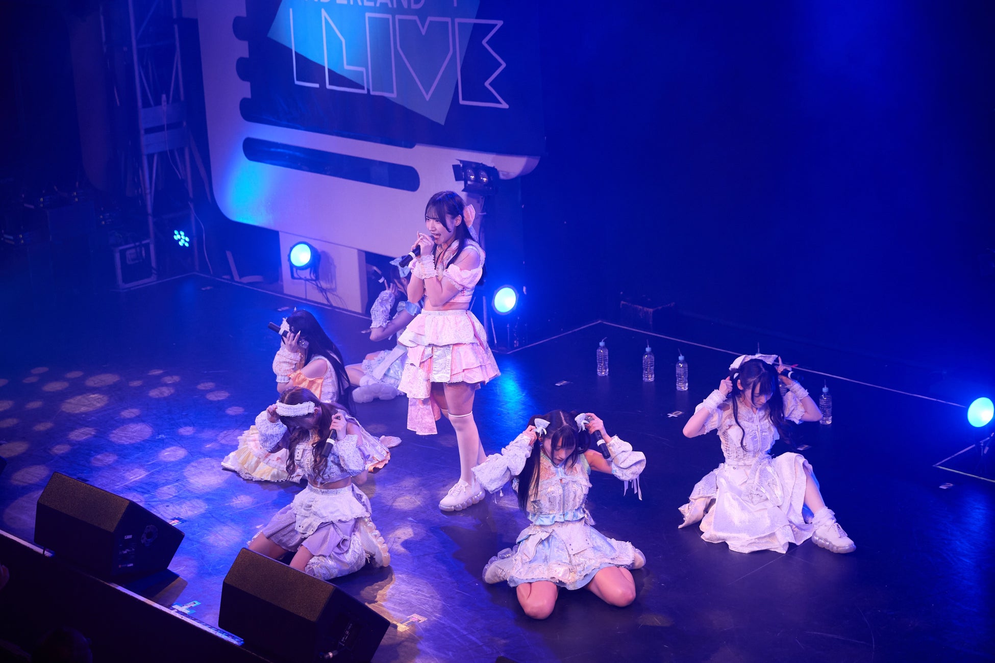 続けてステージに上がったのは、B.L.T.本誌で連載「すいすてのいちページ」をもつSWEET STEADY。彼女たちもまた2024年3月デビューのフレッシュなグループ。「ハートの魔法」、「始まりの合図」、「Sweet Cafe」といったカワイイ曲で観客をときめかせると、「Call me, Tell me」、「なんてねっ!」でさらにすいすての可愛さが全開に! 締めは、2024年12月に1stシングルCDとして発売することが先日発表されたばかりの彼女たちの代表曲であるポップでキャッチーな「ぱじゃまぱーてぃー!」。動画撮影可能曲だけあり、スマホを構えるファンも多くいた。おなじみとなった白石まゆみの「おやすみ!」のフレーズで客席のハートをとらえつつ、30分にわたるスイステのパーティーは次のグループへバトンタッチ!