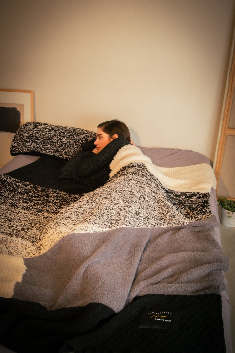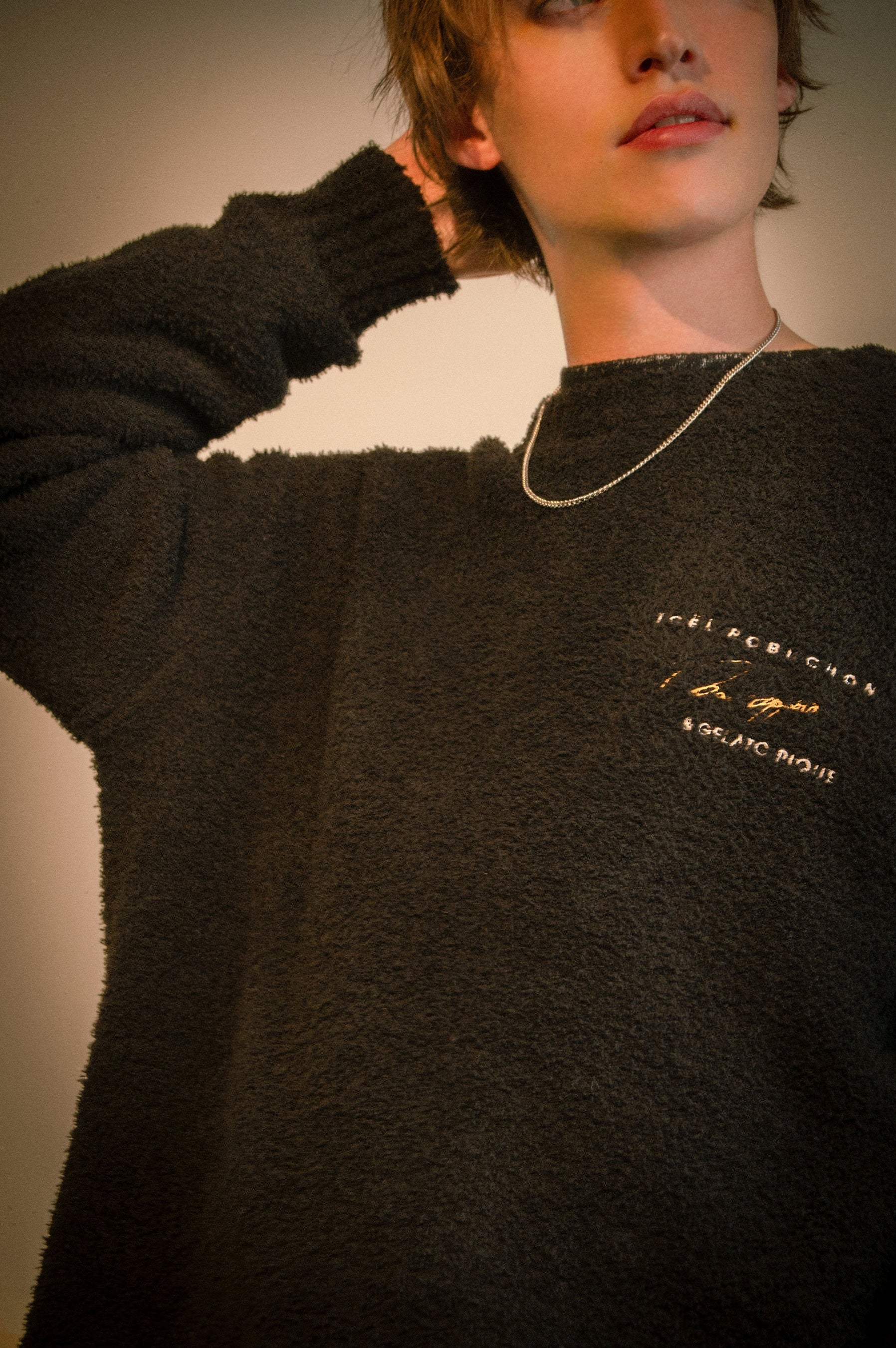 様々な食材がハーモニーを奏でる料理からインスピレーションを得たニットアイテムと、ピュレのようにふわっと軽い肌触りの‘スノー’素材を使用したピローケースがラインアップ。料理を彩るソースをイメージしてデザインした大きなネームがアクセントに。