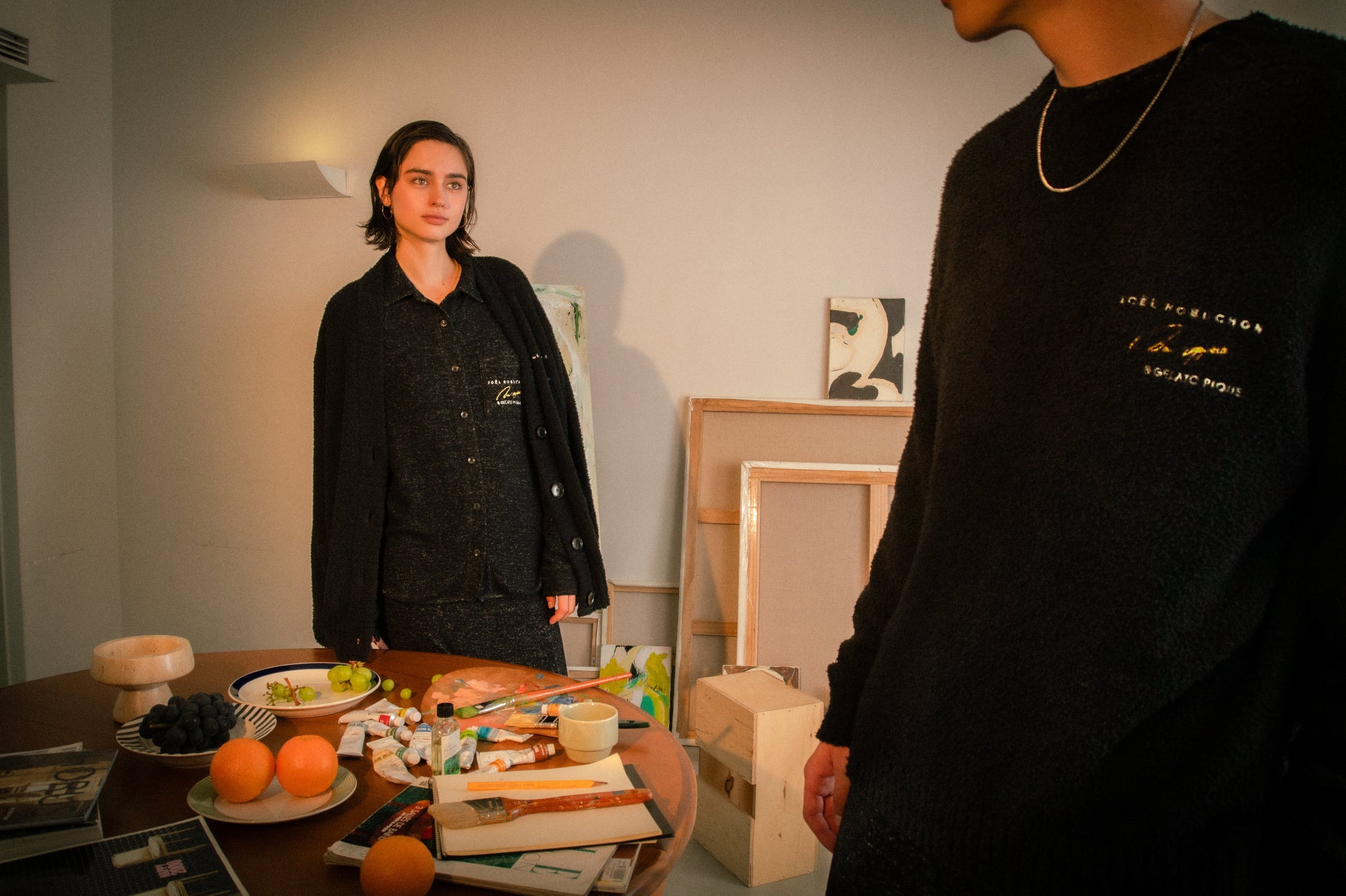 カーディガンには、ジョエル・ロブションのシグネチャーともいえる一皿からインスピレーションを得たボタンを使用。プルオーバーは、裾にスリットを加え、大人の抜け感を演出します。