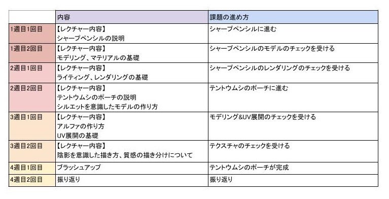 「C&R Creative Academy」(アカデミー)の1か月特別体験コースです。モデリングやテクスチャ制作等、3DCGデザイナーに必要な基本的なスキルや知識を学べます。「アカデミーの雰囲気を体験したい」「アカデミーの課題についていけるか自信がない」といった方におすすめの内容です。