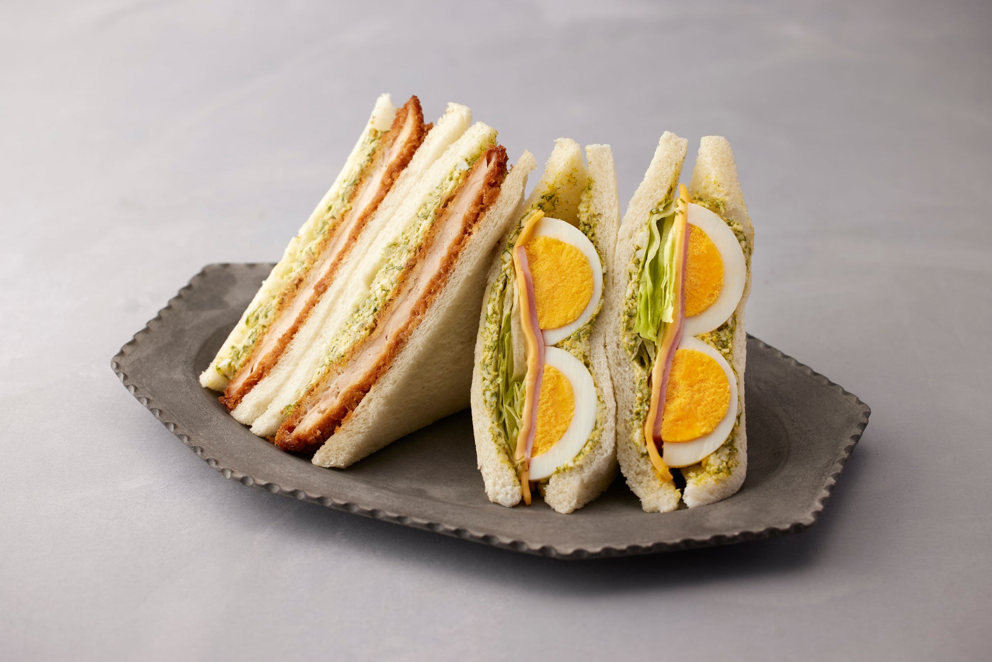 右:すじ青のり香る玉子ハムチーズサンド 648円(1袋)