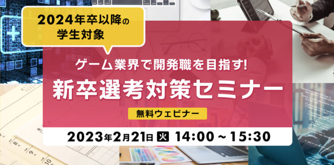 - 【2024年卒以降の学生対象】ゲーム業界で開発職をめざす!新卒就活セミナー