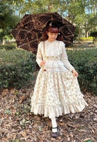 クラシカルなブラウンの色合いで、クラシカルロリータとの相性バッチリです。チェックと花柄の組み合わせが上品です。