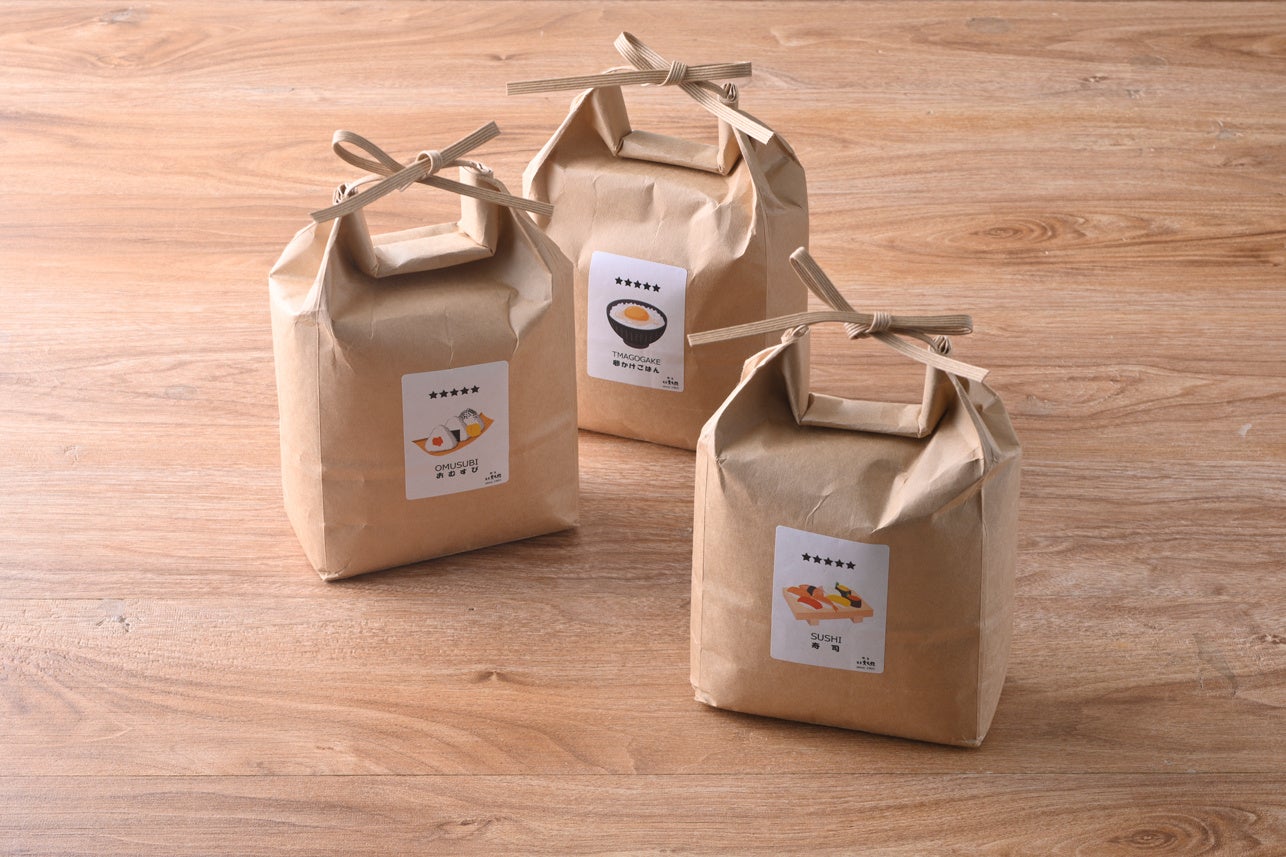 国内外のお客さまにリクエストをいただくのは、和食に合うお米。五つ星お米マイスターが テーマに合わせて、全国の米どころから厳選して特別ブレンドを仕立てました。 粒感がしっかりあるお米と、具材を引き立てるボディ感のあるお米をブレンドした「寿司米」。 ほぐれる粒感と程よい粘りと甘み、冷めても美味しい「おむすび米」。喉越しを意識して たまごのトロみに負けない弾力と、甘みの濃いお米を合わせた「卵かけごはん」。それぞれの ブレンドで白米の個性をお愉しみください。