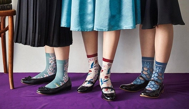 脚に関する描写に凝っていた耽美派の第一人者・谷崎潤一郎。その美的感覚に着想を得て、彼の著作に登場するヒロインたちをイメージした靴下。