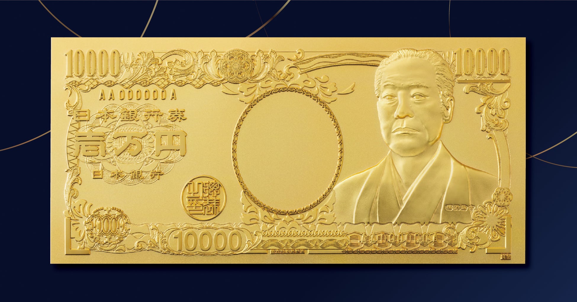 1984年に発行され40年にわたり親しまれてきた福沢諭吉の一万円紙幣が、2024年7月より渋沢栄一に変わることを記念してデザインされた「純金製 壱万円札(福沢諭吉)」も登場いたします。
