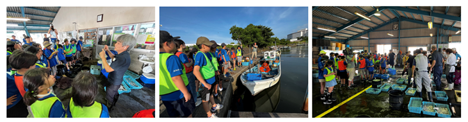 調査隊3日目の最終日は、早朝から浜名湖の雄踏漁港で競りの見学です。長野県にはない漁港では、毎朝、浜名湖で獲れた魚がここに集まります。まずは、競りの前に魚の選別作業を見せてもらいました。この日は天然のうなぎも水揚げされました。競りが始まると3.8kgのウナギ数匹が4万円で落札されると児童からは「すごい高い値段がついた」と驚いた様子でした。