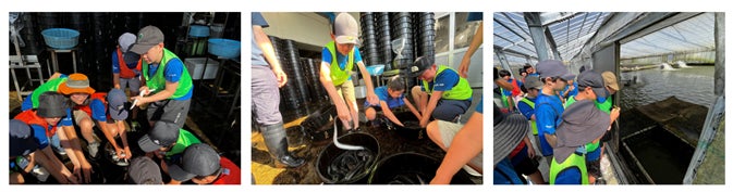 長野県の中心に位置する諏訪湖沿いの岡谷市は江戸時代からウナギ漁が盛んなウナギの街として知られ、ウナギ食文化が今も根付いている地域です。しかし、生息環境が大きく変わり、県内で獲れることはなくなり、国内でも2014年に絶滅危惧種に指定されました。今後、ウナギを水産物として持続的に利用していくためには、その資源を適切に管理することが重要です。そこで、天竜川を通じてその先の海のつながる長野県の小学生が様々な場所で学び、体験する学習プログラムを開催。ウナギが減少している要因を学び、ウナギ養殖の現場で取り組む団体や研究所での学習体験を通して、子どもたちが「ウナギを通して長野県と海のつながりの大切さ」を認識し、自分たちにできることは何かを考え、海への関心を高める機会としました。