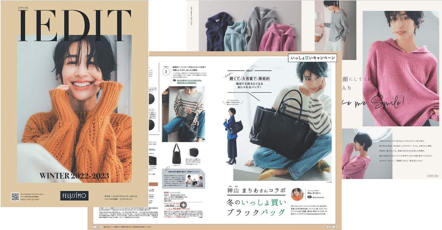 フェリシモが展開するファッションブランド「IEDIT[イディット]」は、神山まりあとの新作コラボレーションアイテムを発表、10月20日よりウェブ販売を行っています。最新カタログのカバーモデルにも起用されている神山まりあは、2011年ミス・ユニバース・ジャパングランプリのファッションモデルです。軽くて大容量で機能的な「軽やか大人バッグ」や毎日のコーディネイトに合わせやすい「シンプルボールイヤアクセ」など、神山まりあのアイデアが詰まった商品が登場しています。また神山まりあ本人による着こなしもチェックできます。コラボアイテムの新作は、ウェブサイトやデジタルカタログに掲載中です。